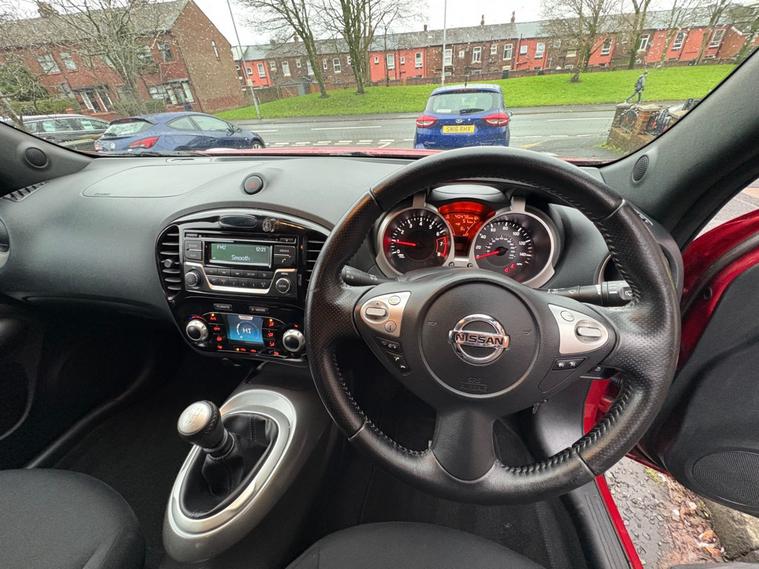 Supplying low mileage immaculate cars for over 43 years. Another example of the ever popular Juke has arrived at our Oldham branch. Just 40000 miles covered through one owner and backed up by service history. Supplied fully serviced with 12 months MOT and up to 2 years RAC warranty available. Electric mirrors and windows, Tyre pressure monitoring, Front fog lights, Trip computer, Radio/CD, USB input, Bluetooth, Climate control, Air conditioning, Cup holders, Privacy glass, Alloy wheels, Remote central locking, Isofix