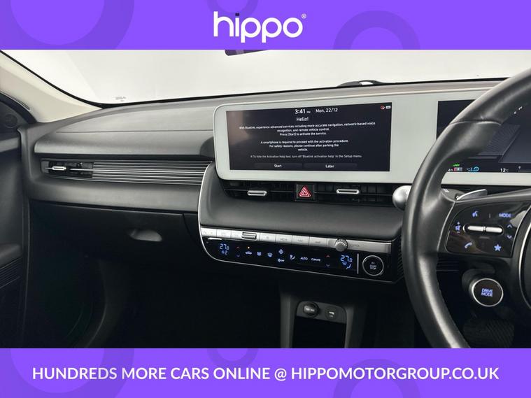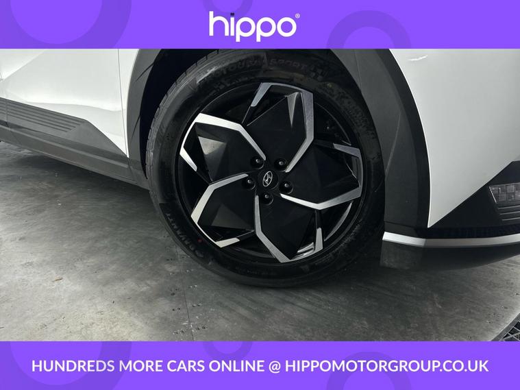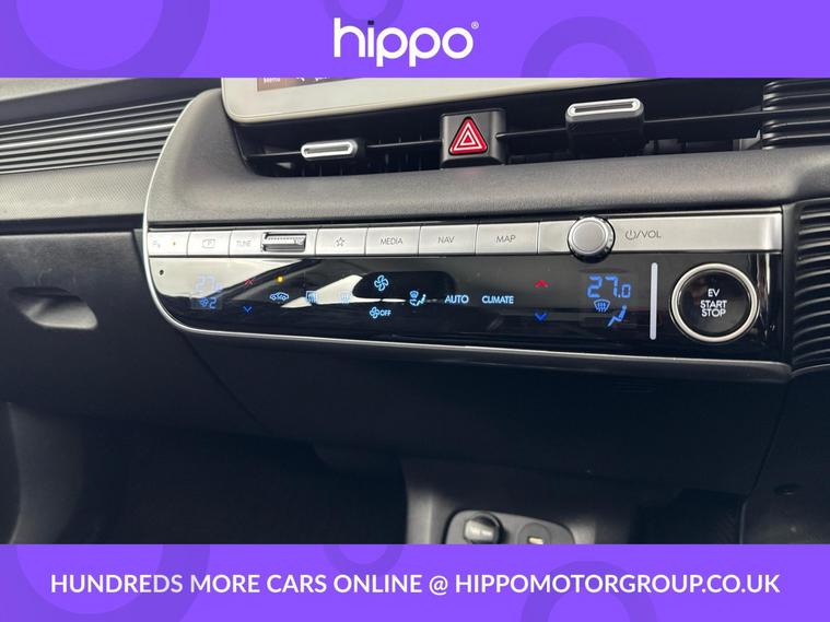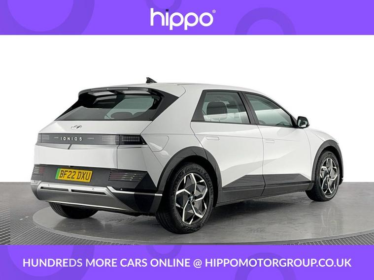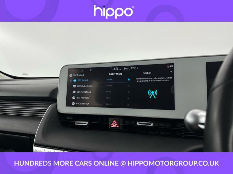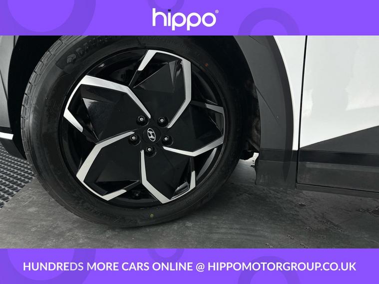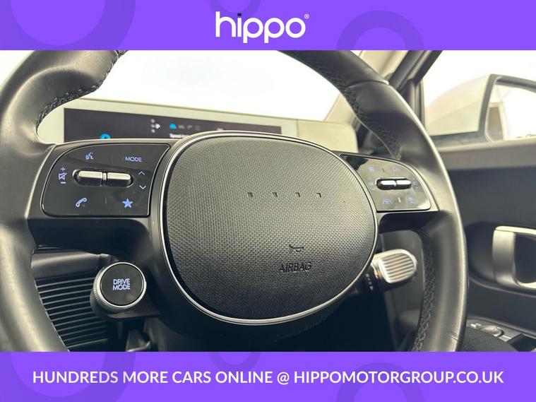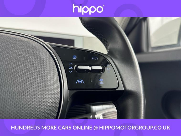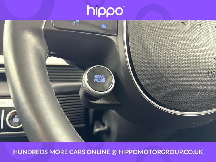 Hippo Approved is known for a wide selection of vehicles suited for various needs and budgets. Each car undergoes a rigorous 130-point quality and safety inspection at our state-of-the-art 3 million preparation centre, ensuring your peace of mind. Additionally, we offer tailored finance packages for personal and business use, making it easy to acquire your ideal car. Introducing the Hyundai IONIQ 5, a sophisticated blend of style and technology. This 58kWh SE Connect Hatchback, with an automatic transmission, boasts an efficient electric powertrain delivering 170 ps. Having covered 51, 108 miles, this car is equipped with features designed to enhance your driving experience. Enjoy seamless navigation and entertainment via the 12.3-inch touchscreen satellite navigation and media centre. The 19-inch alloy wheels not only enhance the vehicle's aesthetic appeal but also contribute to a smooth journey. Comfort is assured with dual-zone climate control air conditioning, and connectivity is effortless with Bluetooth, complete with voice recognition capabilities. Safety and convenience are prioritised with the parking distance warning system, while a leather steering wheel with audio controls ensures easy management of your settings. Rear tinted glass windows add a touch of privacy and style. This Hyundai IONIQ 5 is an excellent choice for those seeking an eco-friendly vehicle with advanced features.