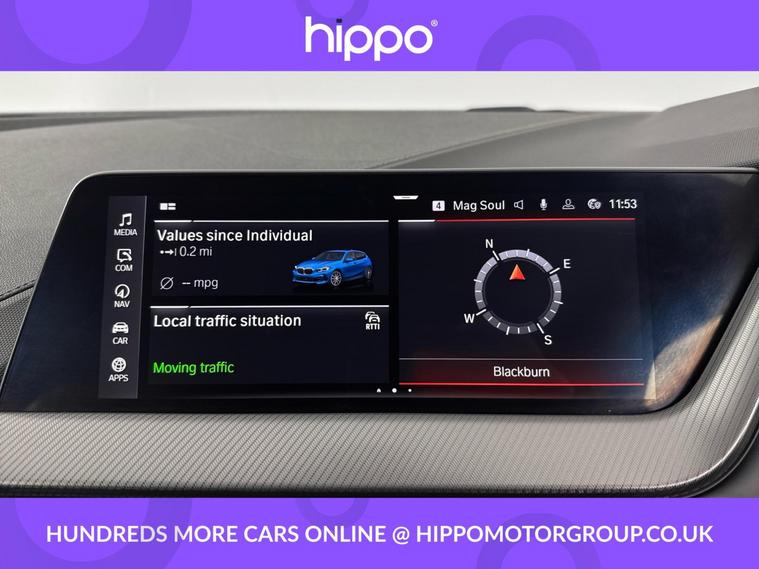 Presenting a BMW 1 Series 1.5 118i M Sport (LCP) Hatchback, a versatile Euro 6 petrol vehicle featuring a DCT automatic gearbox and just 12, 271 miles on the clock. This striking hatchback comes in the eye-catching Misano Blue, complemented by a refined interior finished in Black Perforated Dakota Leather with Grey Highlights. Enhancing both style and performance, the car is equipped with 18-inch M Double-Spoke Style 819 bi-colour alloys. Inside, enjoy the comfort of automatic two-zone air conditioning and heated front seats. Navigation and entertainment are streamlined with BMW Live Cockpit Professional, DAB digital radio, Bluetooth hands-free, and audio streaming via a USB interface. The M Sport Package not only sharpens the cars driving dynamics but also features the distinctive M Sport steering wheel. Practicality is supported by front and rear parking sensors, cruise control with brake function, and a speed limiter for an added layer of confidence on the road. Hippo Approved is known for a wide selection of vehicles suited for various needs and budgets. Each car undergoes a rigorous 130-point quality and safety inspection at our state-of-the-art 3 million preparation centre, ensuring your peace of mind. Additionally, we offer tailored finance packages for personal and business use, making it easy to acquire your ideal car.