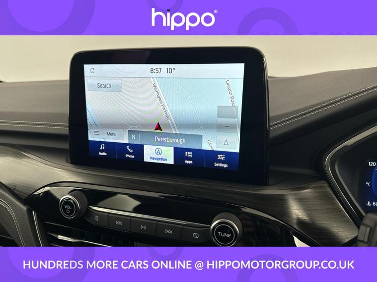 Hippo Approved is known for a wide selection of vehicles suited for various needs and budgets. Each car undergoes a rigorous 130-point quality and safety inspection at our state-of-the-art 3 million preparation centre, ensuring your peace of mind. Additionally, we offer tailored finance packages for personal and business use, making it easy to acquire your ideal car. Presenting the Ford Kuga 2.5 Duratec 14.4kWh Vignale SUV, a versatile petrol plug-in hybrid with a seamless CVT transmission that aligns with Euro 6 emissions standards. With a mileage of 44, 446 miles, this SUV combines efficiency with comfort, offering a range of premium features. The vehicle boasts 19-inch alloy wheels with a 5x2 spoke design in Luster Nickel. Experience comfort with the Electronic Automatic Temperature Control and heated driver, passenger, and rear seats, complemented by a heated steering wheel and quickclear heated windscreen for those frosty mornings. Benefit from the Ford SYNC3 DAB Navigation System, including GEO Awareness, which informs you of ULEZ zones during your journeys. Parking is made easy with front and rear sensors accompanied by a rear-view camera. The Kuga also includes privacy glass and a winter pack for added convenience. Cruise control with a speed limiter ensures a relaxed drive. The sensico-trimmed steering wheel with medium light stone stitching adds an elegant finish to this well-equipped SUV.