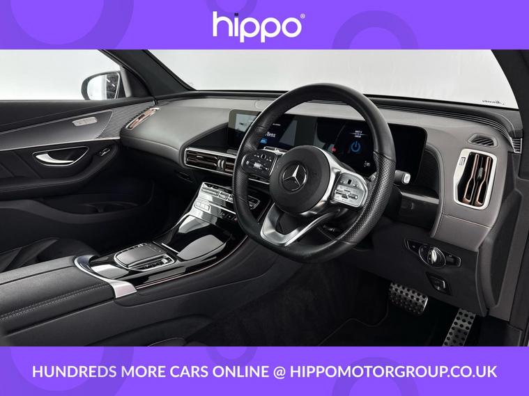 Presenting the Mercedes-Benz EQC, offered in the EQC 400 80kWh AMG Line SUV 5dr Electric Auto 4MATIC (408 ps) configuration, with 58, 855 miles on the clock. This all-electric SUV delivers a sophisticated combination of comfort and technology. The vehicle is equipped with striking 20-inch AMG multi-spoke alloy wheels, ambient lighting, and privacy glass for added style and convenience. Inside, the heated front seats, seat comfort package, and interior lighting package ensure a refined and comfortable journey. The multifunction sports steering wheel, finished in Nappa leather, offers a premium feel and enhanced control, while the Mercedes-Benz sound system and digital radio provide a quality audio experience. Navigating is made simple with hard-disk navigation, EQ navigation services, mirror package, and cruise control. Parking is stress-free thanks to the parking package with PARKTRONIC parking assist and a rear-view camera. This EQC is designed to deliver performance, luxury, and the benefits of all-electric motoring. Hippo Approved is known for a wide selection of vehicles suited for various needs and budgets. Each car undergoes a rigorous 130-point quality and safety inspection at our state-of-the-art 3 million preparation centre, ensuring your peace of mind. Additionally, we offer tailored finance packages for personal and business use, making it easy to acquire your ideal car.
