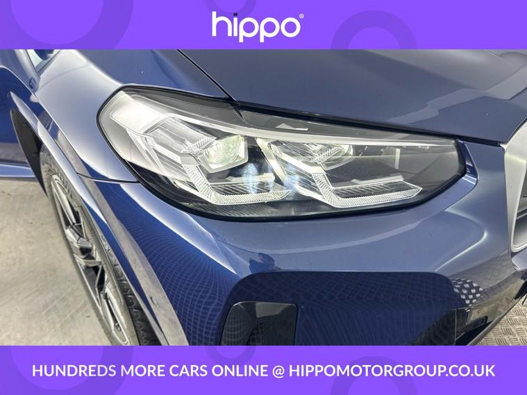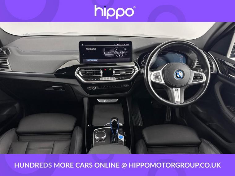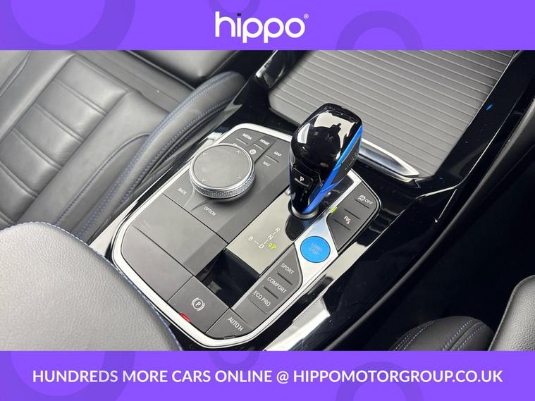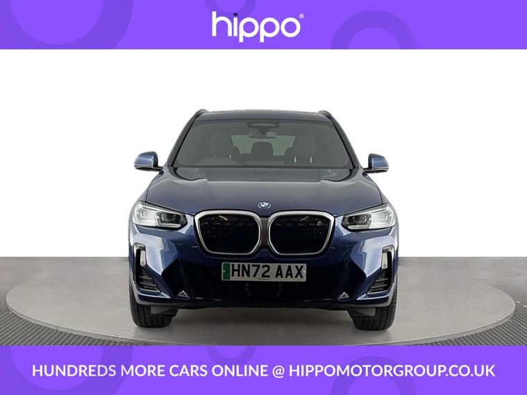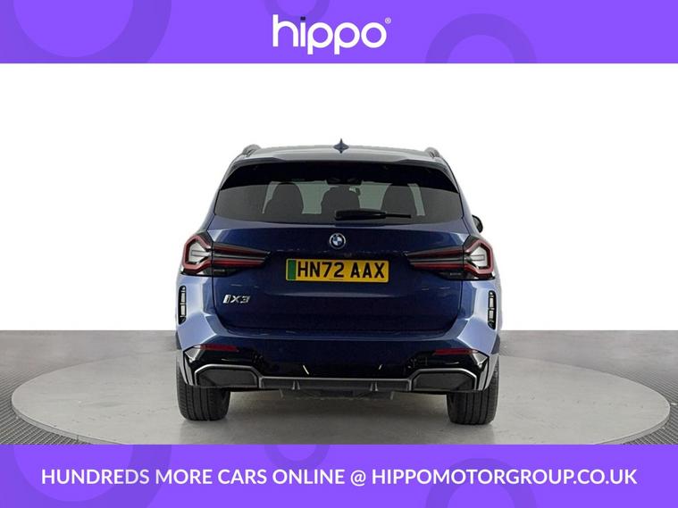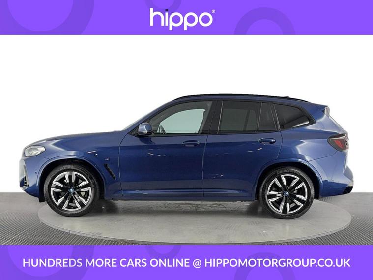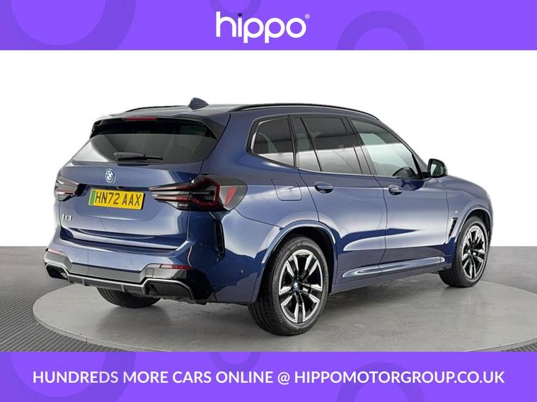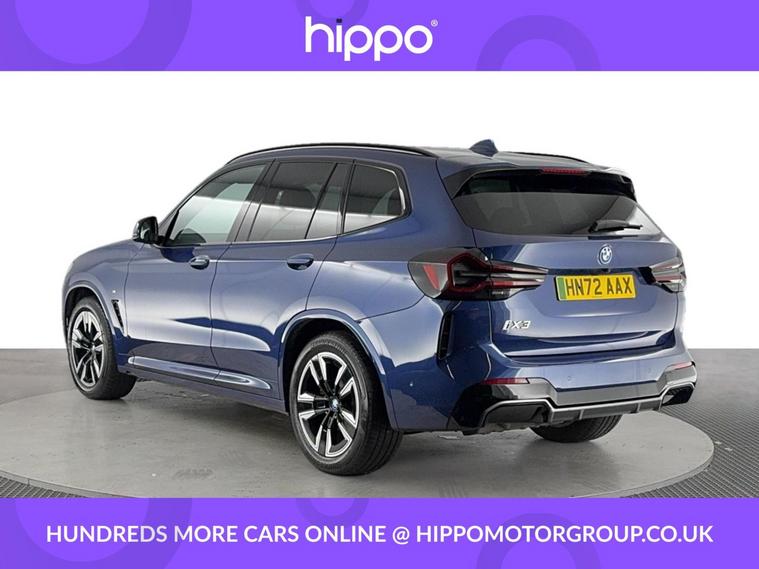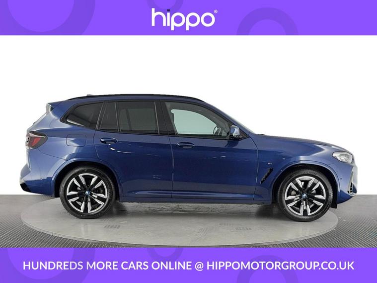 Presenting this BMW iX3 80kWh M Sport SUV 5dr Electric Auto (286 ps) in Phytonic Blue, with 38, 241 miles on the clock. Enjoy impressive efficiency and performance from its fully electric powertrain, complemented by smooth automatic transmission. The exterior is enhanced by 19-inch aerodynamic Jet Black alloy wheels with bi-colour inserts, offering both visual appeal and improved efficiency. Practicality is assured with front and rear parking sensors, making urban driving and tight manoeuvres more straightforward. This SUVs M Sport trim ensures a refined driving experience, while the five-door layout provides versatile space for passengers and luggage. The iX3s advanced features and engaging drive deliver comfort and convenience in every journey. Hippo Approved is known for a wide selection of vehicles suited for various needs and budgets. Each car undergoes a rigorous 130-point quality and safety inspection at our state-of-the-art 3 million preparation centre, ensuring your peace of mind. Additionally, we offer tailored finance packages for personal and business use, making it easy to acquire your ideal car.