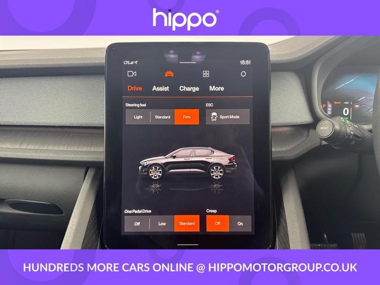 Presenting this Polestar 2 with the sought-after Dual Motor 78kWh Long Range Plus Pilot specification, featuring advanced four-wheel drive and 408 PS of electric power. With 44, 951 miles recorded, this well-maintained fastback provides both performance and efficiency. The vehicle is equipped with striking 19-inch 5-V Spoke Black Diamond Cut alloy wheels and a panoramic roof with a unique projected Polestar symbol, enhancing both presence and interior ambience. Comfort is prioritised with heated front and rear seats, a heated steering wheel, and two-zone climate control. The Harman Kardon sound system delivers impressive audio quality throughout the cabin. Practical features include adaptive cruise control, parking assistance at both front and rear, a 360-degree parking camera, as well as full parking climate and preconditioning for year-round comfort. Tinted rear windows contribute to both privacy and style. Hippo Approved is known for a wide selection of vehicles suited for various needs and budgets. Each car undergoes a rigorous 130-point quality and safety inspection at our state-of-the-art 3 million preparation centre, ensuring your peace of mind. Additionally, we offer tailored finance packages for personal and business use, making it easy to acquire your ideal car.