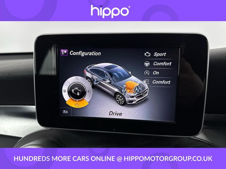 Presented for sale by Hippo Approved: Mercedes-Benz GLC 2.1 GLC250d Sport (Premium) Coupe 5dr Diesel G-Tronic+ 4MATIC Euro 6 (s/s) with 47, 406 miles. This vehicle offers a blend of performance and comfort, featuring 18-inch 5-spoke alloy wheels finished in Vanadium Silver, and privacy glass extending from the B-pillar backwards for enhanced discretion. Driving and parking are made simple with Active Parking Assist, PARKTRONIC sensors and a reversing camera. Interior highlights include the Memory Package, Mirror Package, and the comprehensive Interior Lighting Package, contributing to a comfortable and convenient driving environment. Further comfort is provided by heated front seats and automatic climate control (Thermatic), ensuring the perfect cabin temperature. Enjoy added luxury with a sliding glass sunroof and tinted, single-layer safety glass all round. Entertainment is catered for with a DAB digital radio tuner. Driving controls are easy and accessible, thanks to the DIRECT SELECT steering column gear selector, steering wheel gearshift paddles, and SPEEDTRONIC cruise control with variable speed limiter. Hippo Approved is known for a wide selection of vehicles suited for various needs and budgets. Each car undergoes a rigorous 130-point quality and safety inspection at our state-of-the-art 3 million preparation centre, ensuring your peace of mind. Additionally, we offer tailored finance packages for personal and business use, making it easy to acquire your ideal car.