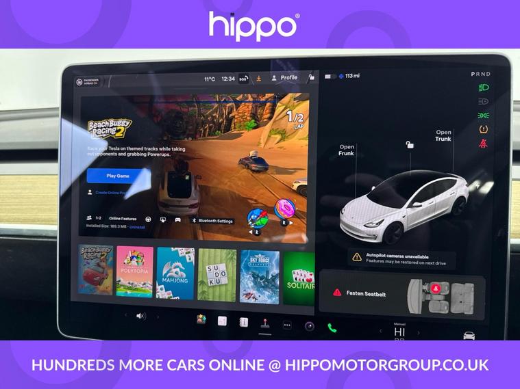 Hippo Approved is known for a wide selection of vehicles suited for various needs and budgets. Each car undergoes a rigorous 130-point quality and safety inspection at our state-of-the-art 3 million preparation centre, ensuring your peace of mind. Additionally, we offer tailored finance packages for personal and business use, making it easy to acquire your ideal car. Presenting the Tesla Model 3, Standard Range Plus Saloon 4dr Electric Auto RWD with 241 bhp, a perfect blend of innovation and performance. With 41, 986 miles on the clock, this vehicle is finished in an elegant Pearl White and comes with 18in Aero alloy wheels. It boasts a host of features designed for comfort and convenience, including 12-way power-adjustable heated front seats and a two-zone climate control system. The interior experience is enhanced by a state-of-the-art audio system with 8 speakers and limited immersive sound, alongside Bluetooth connectivity and a navigation system. Safety is paramount, with adaptive cruise control, front and rear parking sensors, a park assist camera, and a reverse parking aid. Adding to the appeal is a tinted glass roof offering ultraviolet and infrared protection. This Tesla Model 3 is an exemplary choice for those seeking an electric vehicle with advanced features and contemporary style.