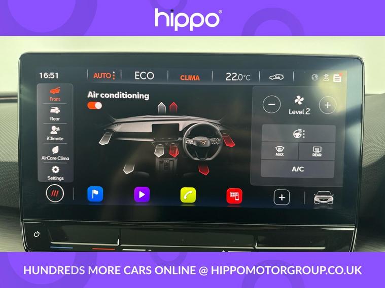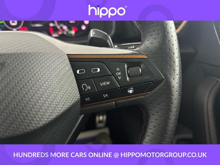 Hippo Approved is known for a wide selection of vehicles suited for various needs and budgets. Each car undergoes a rigorous 130-point quality and safety inspection at our state-of-the-art 3 million preparation centre, ensuring your peace of mind. Additionally, we offer tailored finance packages for personal and business use, making it easy to acquire your ideal car. Presenting the CUPRA Leon, a 1.4 eHybrid 12.8kWh VZ2 Design Edition Hatchback, equipped with DSG Euro 6 (s/s) technology. This sleek plug-in hybrid, with only 22, 452 miles on the clock, effortlessly combines style and sustainability. Designed with the environment in mind, it includes both a 16amp Mode 3 charging cable and a 10amp Mode 2 charging cable, ensuring compatibility with various charging stations for your convenience. The car showcases striking 19-inch Performance Alloy Wheels in Satin Black and Copper, providing not only a distinctive visual appeal but also enhanced driving dynamics. Inside, the Media System Plus with navigation ensures that you're always connected and informed, whether you're navigating city streets or exploring new destinations. The CUPRA Leon stands as a testament to innovative driving technology, offering a dynamic and efficient driving experience tailored to modern needs.