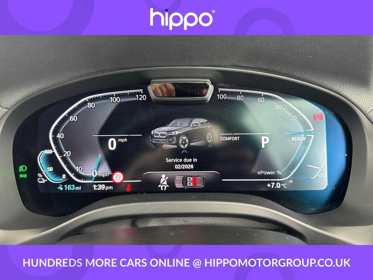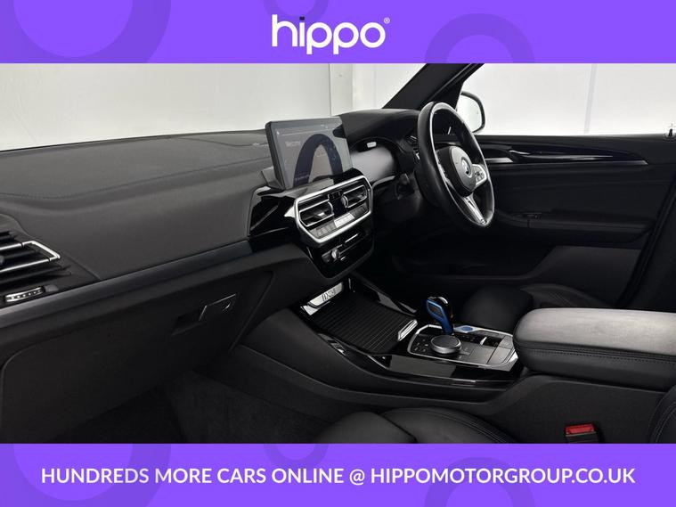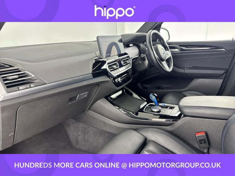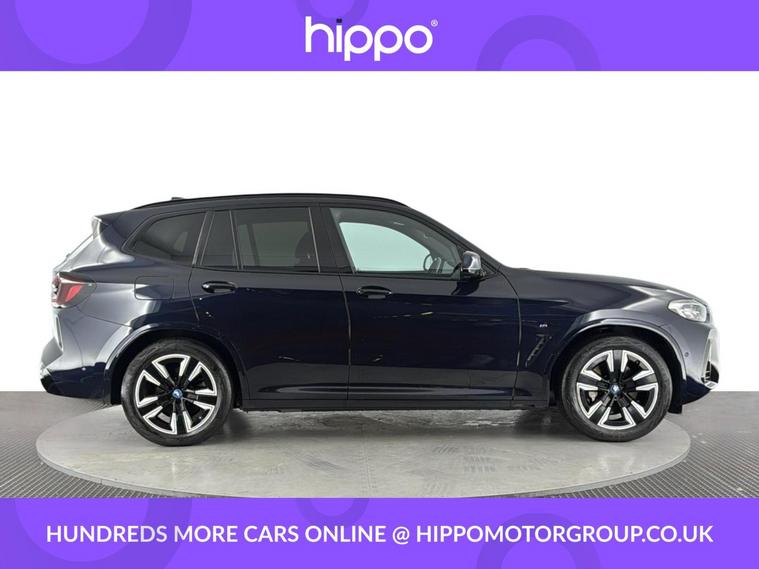 Presenting this BMW iX3 80kWh M Sport SUV 5dr Electric Auto (286 ps), finished in elegant Carbon Black with striking 19-inch aerodynamic alloy wheels in Jet Black and Bi-Colour inserts. This vehicle has covered 35, 773 miles and benefits from a comprehensive service history, with its last service completed at 20, 000 miles. The iX3 offers a refined driving experience, accompanied by a panoramic glass sunroof that enhances the spacious interior with natural light. Combining electric efficiency with BMWs renowned driving dynamics, this model is well-suited to make both city and long-distance journeys enjoyable. Hippo Approved is known for a wide selection of vehicles suited for various needs and budgets. Each car undergoes a rigorous 130-point quality and safety inspection at our state-of-the-art 3 million preparation centre, ensuring your peace of mind. Additionally, we offer tailored finance packages for personal and business use, making it easy to acquire your ideal car.