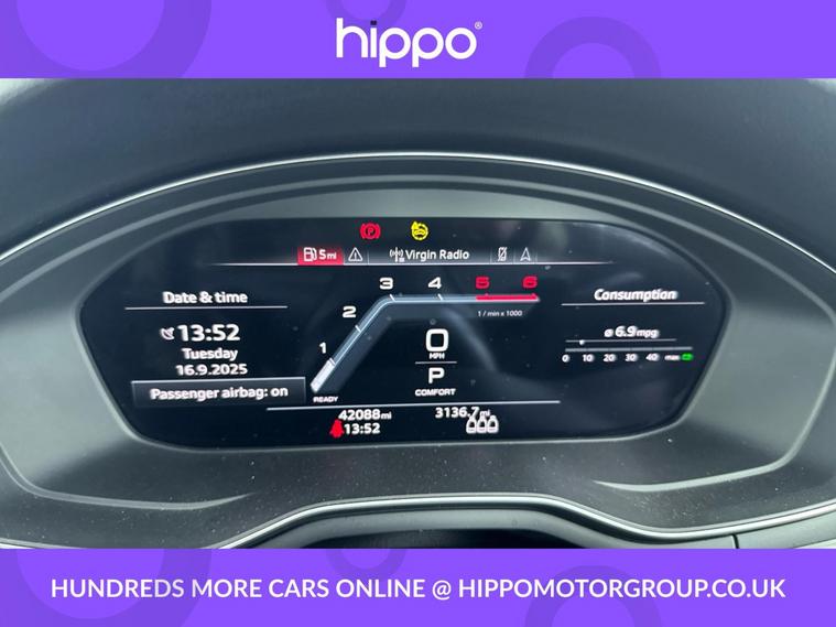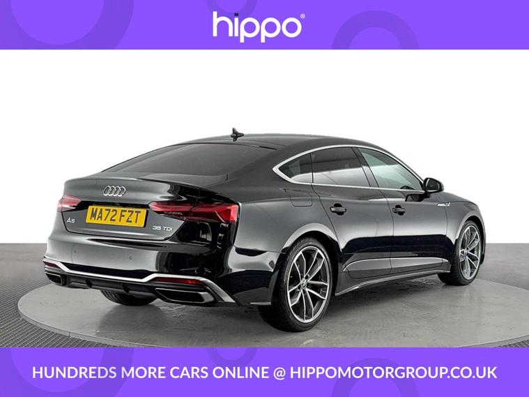 Hippo Approved is known for a wide selection of vehicles suited for various needs and budgets. Each car undergoes a rigorous 130-point quality and safety inspection at our state-of-the-art 3 million preparation centre, ensuring your peace of mind. Additionally, we offer tailored finance packages for personal and business use, making it easy to acquire your ideal car. Presenting the Audi A5 2.0 TDI 35 S line Sportback Diesel S Tronic Euro 6, a blend of performance and sophistication with just 41, 589 miles on the odometer. This vehicle features impressive 19-inch alloy wheels in a 5-Spoke-Cavo design and comes with practical enhancements like privacy glass and parking system plus with front and rear sensors, including a rear-view camera for added convenience. The interior boasts an Audi Virtual Cockpit and MMI Navigation Plus with MMI Touch, enriching your driving experience. Stay connected with the Bluetooth interface and enjoy your favourite stations through the DAB digital radio. Comfort is prioritised with deluxe 3-zone electronic climate control and heated front seats, featuring a gear lever knob in black perforated leather, adding a touch of elegance. Cruise control with a speed limiter ensures a relaxed drive on long journeys. Experience refined luxury with this Audi A5 from Hippo Approved.
