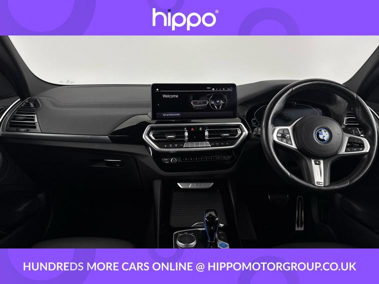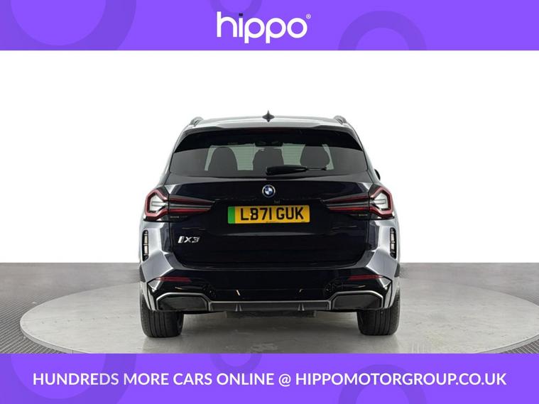 Presenting this BMW iX3 80kWh M Sport SUV 5dr Electric Auto (286 ps), finished in elegant Carbon Black with striking 19-inch aerodynamic alloy wheels in Jet Black and Bi-Colour inserts. This vehicle has covered 35, 773 miles and benefits from a comprehensive service history, with its last service completed at 20, 000 miles. The iX3 offers a refined driving experience, accompanied by a panoramic glass sunroof that enhances the spacious interior with natural light. Combining electric efficiency with BMWs renowned driving dynamics, this model is well-suited to make both city and long-distance journeys enjoyable. Hippo Approved is known for a wide selection of vehicles suited for various needs and budgets. Each car undergoes a rigorous 130-point quality and safety inspection at our state-of-the-art 3 million preparation centre, ensuring your peace of mind. Additionally, we offer tailored finance packages for personal and business use, making it easy to acquire your ideal car.