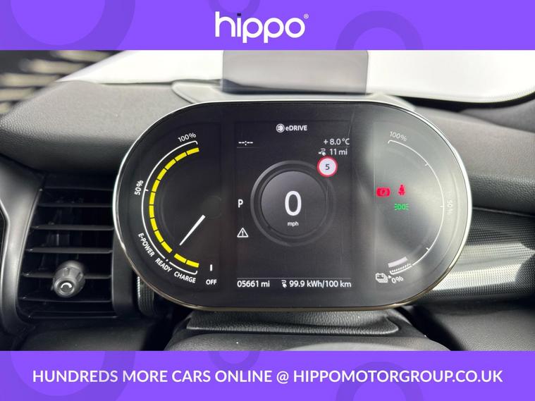 Presenting this MINI Electric Hatch Cooper SE 32.6kWh Level 3 Hatchback 3dr Electric Auto (184 ps), with only 5, 509 miles on the clock. Finished in stylish Moonwalk Grey, this model features both 17in Cosmos Spoke and 17in Roulette Spoke alloy wheels, and sports MINI Yours Lounge Leather in Carbon Black for a premium interior feel. Enjoy a comfortable drive with automatic dual zone air conditioning, heated seats, and a panoramic glass sunroof. The car comes equipped with a range of convenience and safety features including cruise control with brake function, a Driving Assistant Pack, Park Assist, front and rear Park Distance Control, and a rear-view camera for easier manoeuvring. Navigation is effortless with the Navigation Plus Pack, while the Harman Kardon premium speakers and Bluetooth connectivity provide exceptional sound quality and seamless audio streaming. The interior is enhanced by the MINI Excitement Pack, Interior Light Pack, and multifunction steering wheel controls for added convenience. Hippo Approved is known for a wide selection of vehicles suited for various needs and budgets. Each car undergoes a rigorous 130-point quality and safety inspection at our state-of-the-art £3 million preparation centre, ensuring your peace of mind. Additionally, we offer tailored finance packages for personal and business use, making it easy to acquire your ideal car.