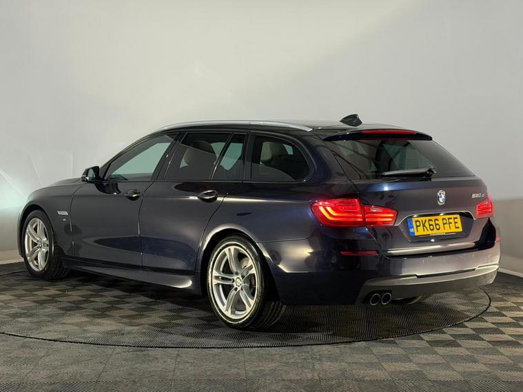 2016 BMW 520d M Sport 2.0 Diesel Automatic Estate in Stunning Black with 1 previous owner full service history extensive paperwork electric sun roof sat nav full leather with heated seats 190 brake horsepower £165 tax 60 combined miles per gallon EURO 6 ULEZ compliant 2 keys and a new 12 month MOT. High spec M Sport estate with electric sun roof touchscreen sat nav front and rear parking sensors keyless go full leather with heated seats and powerful 2.0 diesel 190 BHP engine with smooth automatic gearbox and paddle shift. Full service history and extensive paperwork. The 5 Series estate's premium cabin spacious boot and refined performance make it one of the best luxury estates comfortable practical and effortless every day. The M Sport trim is fully loaded with 18 inch alloy wheels bi xenon headlights LED daytime running lights rear privacy glass split tailgate front and rear parking sensors keyless go stop start technology air conditioning digital dual zone climate control and cruise control for a premium exterior. Features like full leather interior front 3 stage heated seats and ISOFIX anchor points provide premium comfort and safety. Entertainment and connectivity are exceptional with a BMW iDrive CD DAB AM FM stereo system satellite navigation system voice control Bluetooth audio and telephone auxiliary audio input and USB audio and charging input. Additional conveniences include front and rear electric windows rear heated screen automatic lights automatic wipers auto tinting rear view mirror electric mirrors leather arm rest cup holders 12 volt battery points sport comfort ECO PRO vehicle dynamic modes auto hold electric park brake adjustable steering column multifunctional steering wheel and automatic tiptronic gearbox with paddle shift for a smooth and engaging drive. With full service history and extensive paperwork this 520d offers outstanding value for a high spec estate. As an AA Approved Dealer Noahs Automotive Ltd ensures confidence with HPI clear vehicles competitive pricing checked daily across the UK market and nationwide delivery within 24 to 72 hours. Part exchanges are welcomed with fast fair valuations and extended warranty options are available upon enquiry. This high demand vehicle requires prompt action secure it with a small reservation deposit and request HD photos or live video walkarounds. Contact Noahs Automotive Ltd located at CV10 9JD open 7 days a week including evenings to arrange a viewing or reserve this vehicle today.