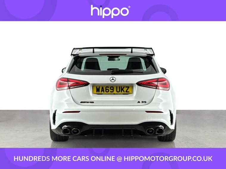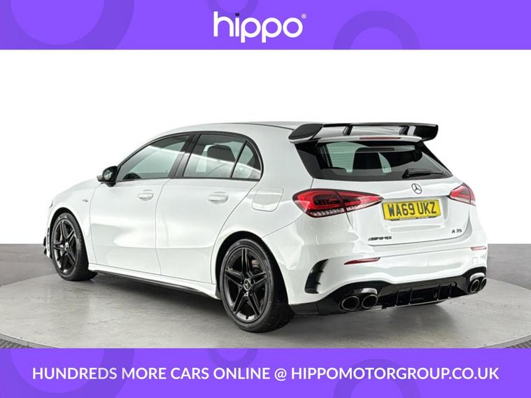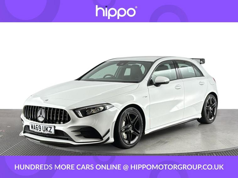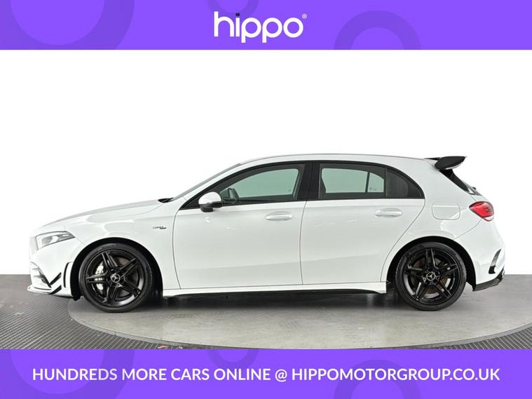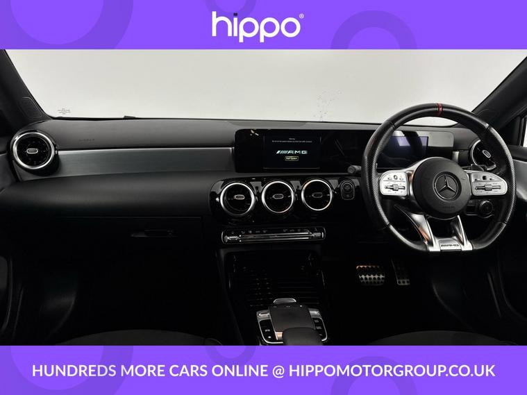 Presenting a Mercedes-Benz A Class 2.0 A35 AMG Hatchback 5dr Petrol SpdS DCT 4MATIC Euro 6 (s/s) (306 ps) with 39, 516 miles. Equipped with 18-inch AMG 5 twin spoke alloy wheels (bi-colour finish), this vehicle also features THERMOTRONIC two-zone luxury automatic air conditioning and a seat comfort package for a refined driving environment. Interior highlights include a 7-inch media display with touch screen functionality, hard-disk navigation, DAB digital radio tuner, a 100W Mercedes-Benz sound system, and a dual Bluetooth interface alongside two Type C USB ports for connectivity. Convenience and safety are further enhanced by the reversing camera with 180-degree parking guidelines, privacy glass, cruise control with limiter, and the light and sight package. The AMG performance steering wheel in Nappa leather, complemented by silver-coloured aluminium gearshift paddles, adds a sporty touch. Hippo Approved is known for a wide selection of vehicles suited for various needs and budgets. Each car undergoes a rigorous 130-point quality and safety inspection at our state-of-the-art 3 million preparation centre, ensuring your peace of mind. Additionally, we offer tailored finance packages for personal and business use, making it easy to acquire your ideal car.