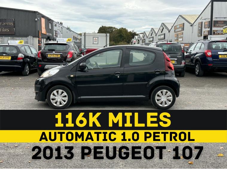 2013 Peugeot 107___________________£20 Road Tax________________MOT: Sept 2026____________116k Miles__________Service History________________Low Insurance Group__________________3 months Evo Warranty for extra_________________x21 Automatic Cars in Store______________
