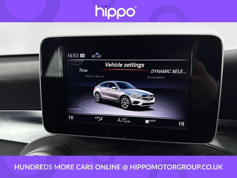 Presented for sale by Hippo Approved: Mercedes-Benz GLC 2.1 GLC250d Sport (Premium) Coupe 5dr Diesel G-Tronic+ 4MATIC Euro 6 (s/s) with 47, 406 miles. This vehicle offers a blend of performance and comfort, featuring 18-inch 5-spoke alloy wheels finished in Vanadium Silver, and privacy glass extending from the B-pillar backwards for enhanced discretion. Driving and parking are made simple with Active Parking Assist, PARKTRONIC sensors and a reversing camera. Interior highlights include the Memory Package, Mirror Package, and the comprehensive Interior Lighting Package, contributing to a comfortable and convenient driving environment. Further comfort is provided by heated front seats and automatic climate control (Thermatic), ensuring the perfect cabin temperature. Enjoy added luxury with a sliding glass sunroof and tinted, single-layer safety glass all round. Entertainment is catered for with a DAB digital radio tuner. Driving controls are easy and accessible, thanks to the DIRECT SELECT steering column gear selector, steering wheel gearshift paddles, and SPEEDTRONIC cruise control with variable speed limiter. Hippo Approved is known for a wide selection of vehicles suited for various needs and budgets. Each car undergoes a rigorous 130-point quality and safety inspection at our state-of-the-art 3 million preparation centre, ensuring your peace of mind. Additionally, we offer tailored finance packages for personal and business use, making it easy to acquire your ideal car.