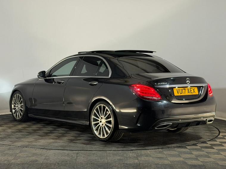 2017 Mercedes-Benz C220d AMG Line Premium Plus 2.1 Diesel Automatic Saloon in Stunning Black with 1 previous owner full service history electric sun-roof with rear panoramic glass roof Burmester premium sound reversing camera full black leather with heated electric memory seats keyless go 170 brake horsepower 61 combined miles per gallon EURO 6 ULEZ compliant 2 keys and a new 12 month MOT. High spec AMG Line Premium Plus with electric sun-roof with rear panoramic glass roof Burmester premium sound reversing camera sat nav front and rear parking sensors rear privacy glass keyless go stop start technology air conditioning digital dual zone climate control and cruise control for a premium exterior. Features like full black leather interior front 3 stage heated seats front electric powered seats front 3 stage memory setting seats and ISOFIX anchor points provide premium comfort and safety. Entertainment and connectivity are exceptional with a digital display Mercedes CD DAB AM FM stereo system Burmester premium sound system satellite navigation system voice control Bluetooth audio and telephone. Additional conveniences include front and rear electric windows rear heated screen automatic lights automatic wipers auto tinting rear view mirror leather arm rest cup holders vehicle dynamic modes electric park brake and automatic tiptronic gearbox with paddle shift for a smooth and engaging drive. With full service history this C220d offers outstanding value for a high spec saloon. As an AA Approved Dealer Noahs Automotive Ltd ensures confidence with HPI clear vehicles competitive pricing checked daily across the UK market and nationwide delivery within 24 to 72 hours. Part exchanges are welcomed with fast fair valuations and extended warranty options are available upon enquiry. This high demand vehicle requires prompt action secure it with a small reservation deposit and request HD photos or live video walkarounds. Contact Noahs Automotive Ltd located at CV10 9JD open 7 days a week including evenings to arrange a viewing or reserve this vehicle today.