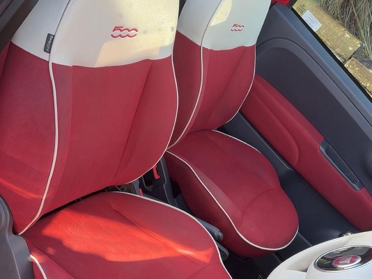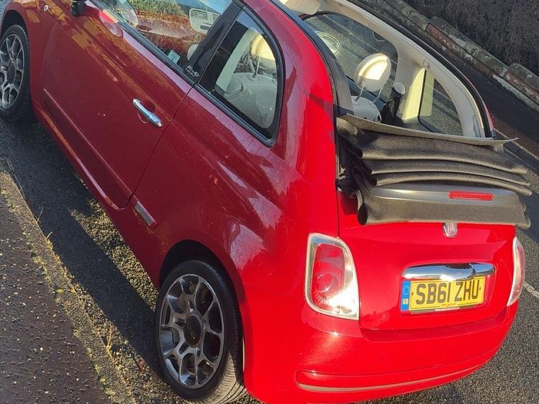 Fiat 500 convertible pop start/stop 1.25 petrol, 2012 61reg, 5 speed manual, in rosso passionale with cream and red interior, electric convertible roof, electric windows and mirrors, city steering, only 66, 000 miles , 2 keys , MOTD 28th August 2026, only £35 a year road tax , nice car inside and out £2995