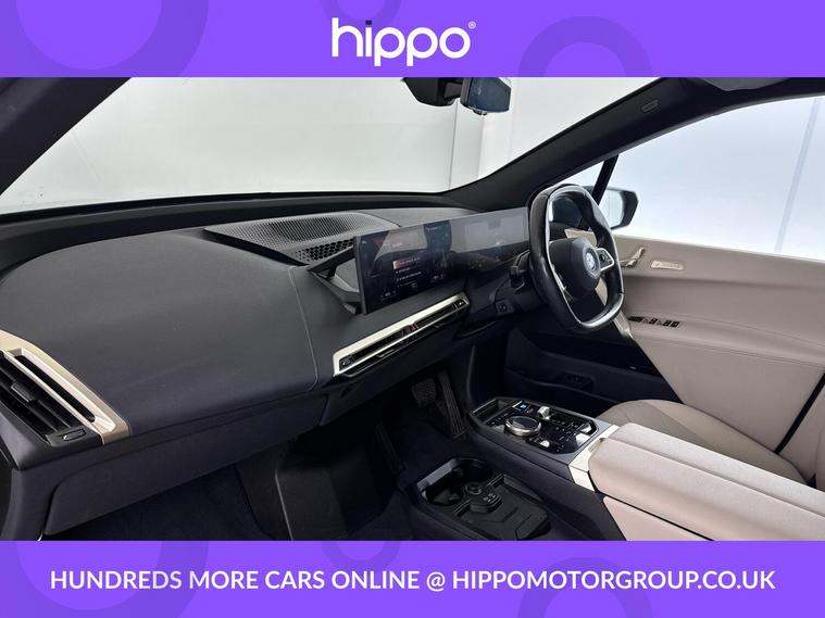 Presenting this BMW iX 40 76.6kWh M Sport SUV 5dr Electric Auto xDrive (326 ps) finished in the striking Storm Bay colour, with 35, 974 miles covered and two recorded services, the most recent at 35, 000 miles. This vehicle is specified with the desirable Skylounge Pack, providing an enhanced luxury ambience throughout the spacious interior. It sits on 22-inch Bi-Colour Aero alloy wheels in the stylish 1020 design, adding a distinctive, dynamic look. The Parking Assistant feature ensures that parking and manoeuvring in tight spaces is straightforward and stress-free. As an electric SUV, this iX offers a refined drive with xDrive all-wheel drive technology and a generous battery capacity. The vehicle presents in excellent condition, benefiting from a thorough service history that underlines its careful ownership. Hippo Approved is known for a wide selection of vehicles suited for various needs and budgets. Each car undergoes a rigorous 130-point quality and safety inspection at our state-of-the-art 3 million preparation centre, ensuring your peace of mind. Additionally, we offer tailored finance packages for personal and business use, making it easy to acquire your ideal car.
