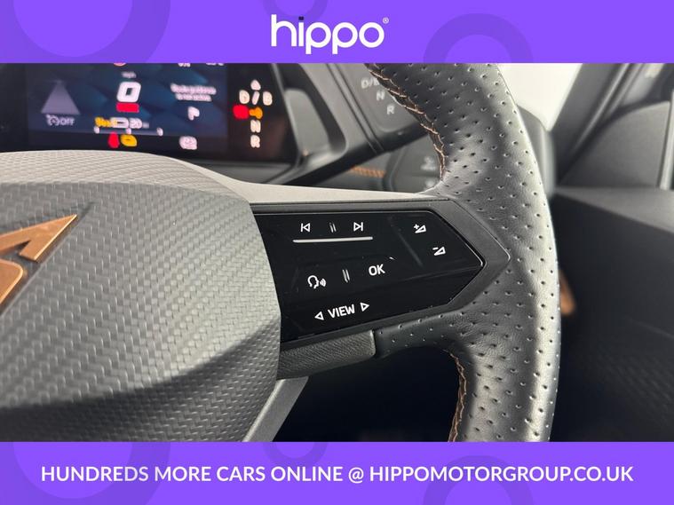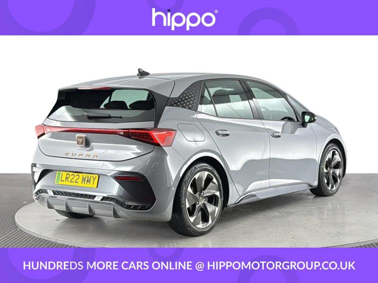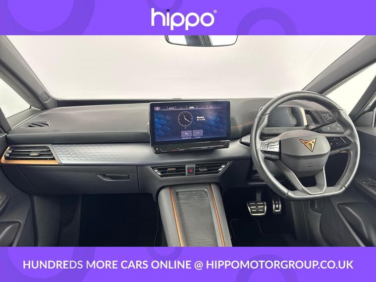 Presenting this CUPRA Born 58kWh V1 Hatchback 5dr Electric Auto (204 ps), with 15, 061 miles on the clock. This electric hatchback is equipped with 18-inch Cyclone Alloy Wheels and features a stylish exterior enhanced by dark tinted rear windows. Inside, the 5.3-inch digital cockpit and a 12-inch central display infotainment system offer seamless access to vehicle information and entertainment, including DAB, AM/FM radio, and Bluetooth connectivity. Climatronic dual-zone air conditioning provides comfort for all occupants, while the heated, leather-wrapped multifunction steering wheel offers added convenience. This model is fitted with park assist technology, complete with front and rear sensors, to support effortless parking and manoeuvring in tight spaces. Hippo Approved is known for a wide selection of vehicles suited for various needs and budgets. Each car undergoes a rigorous 130-point quality and safety inspection at our state-of-the-art 3 million preparation centre, ensuring your peace of mind. Additionally, we offer tailored finance packages for personal and business use, making it easy to acquire your ideal car.