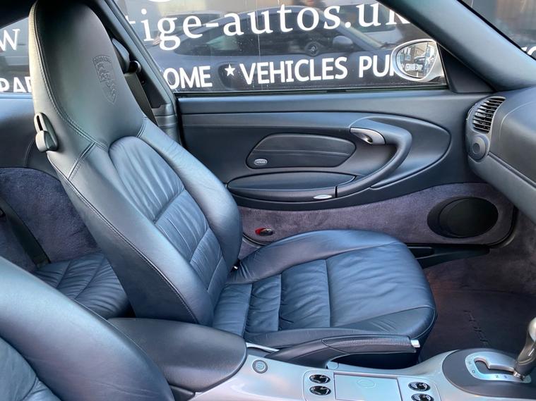 2001 51reg PORSCHE 911 TURBO 996 3.6 TIPTRONIC S AUTOMATIC COUPE COVERED MEGA LOW GENUINE MILEAGE OF 32400 WITH 17 SERVICES CARRIED OUT, 8 BY PORSCHE MAIN DEALERS AND 9 BY PORSCHE INDEPENDENT SPECIALISTS. JUST BEEN SERVICED UP TO DATE WITH BRAKE FLUID CHANGE AND COOLANT CHANGE BY OUR LOCAL PORSCHE SPECIALIST. FOLDER FULL OF INVOICES FOR ALL MAINTENANCE, REPAIRS AND UPKEEP. EVERY SINGLE ORIGINAL MOT CERTIFICATE. FIRST REGISTERED 01/09/2001. FULL SET OF KEYS. METALLIC ARCTIC SILVER PAINTWORK WITH DARK BLUE SOFT RUFFLED LEATHER. CURRENT MOT VALID TILL 26/01/2027. LOWER TAX BAND 12 MONTHS PRICED 415 POUNDS. HEADLINE FIGURES OF 185 MPH TOP SPEED AND 0-60 IN 4.9 SECONDS WHEN NEW. 12/20/29 MPG OFFICIAL FUEL ECONOMY FIGURES WHEN NEW. 5 FORMER KEEPERS, CURRENT OWNER SINCE DEC 2019. ELEC SEATS WITH DRIVERS MEMORY FUNCTION. PCM NAVIGATION SYSTEM, 6CD CHANGER. ELEC TILT AND SLIDE SUNROOF. ALUMINIUM PAINTED INSTRUMENT DIALS. PORSCHE EMBOSSED CREST TO HEADRESTS. REAR PARKING SENSORS. ACTIVE REAR SPOILER. 18 INCH UNMARKED ALLOYS WITH PIRELLI P ZERO ROSSO TYRES ALL ROUND. AUTOGLYM LIFESHINE PROTECTED INSIDE & OUT. FANTASTIC OWNERSHIP PROSPECT. DEFINITELY WONT BE MANY AROUND IN THIS CONDITION WITH THIS LEVEL OF SERVICE HISTORY. TRULY BEEN CHERISHED ALL ITS LIFE. WILL ONLY GO ONE WAY IN ITS VALUE FROM HERE! FULL SERVICE HISTORY DETAILS AVAILABLE BY REQUEST. FOR MANY MANY MORE PICS PLEASE VISIT DEALER WEBSITE. NATIONWIDE DELIVERY SERVICE AVAILABLE. ALL DEALER FACILITIES. FULL PERSONALISED VIDEOS AVAILABLE. CONTACTLESS VIEWING & PURCHASING AVAILABLE. WORLDWIDE EXPORT ENQUIRIES WELCOME, SHIPPING ARRANGED.