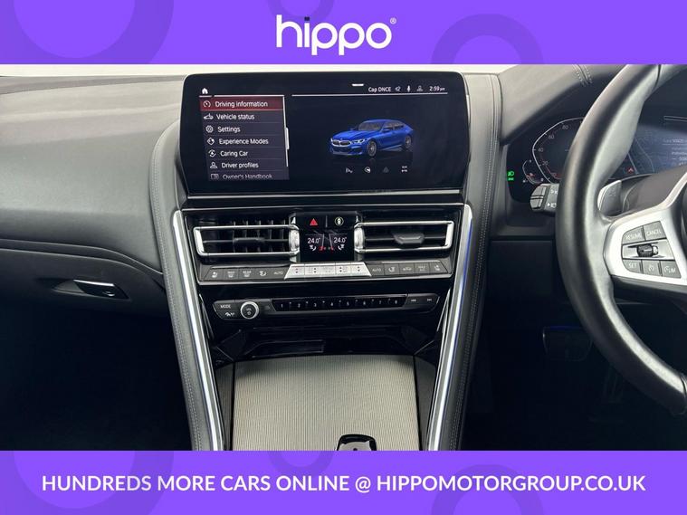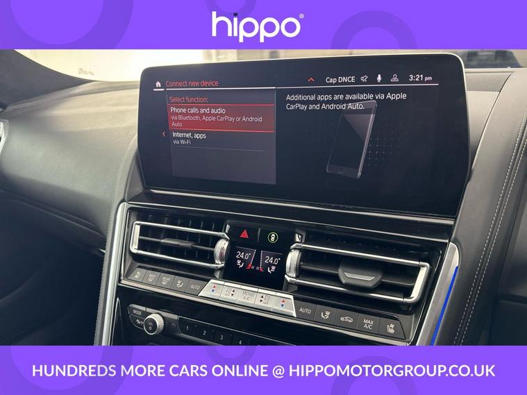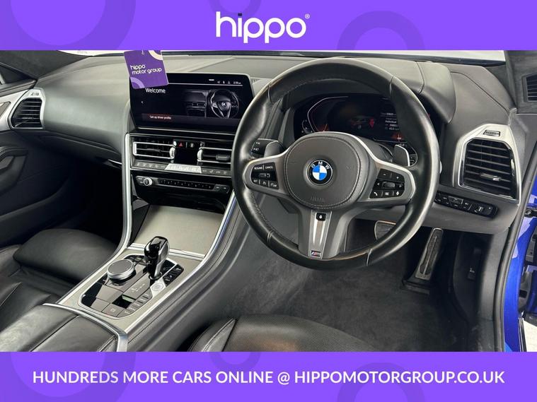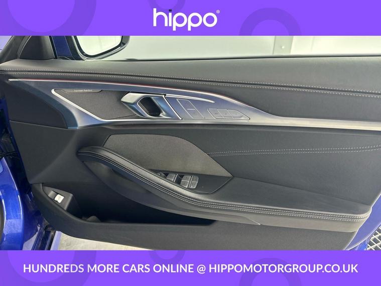 Presenting this BMW 8 Series Gran Coupe 3.0 840i M Sport Saloon, finished in striking Portimao Blue and equipped with an efficient Steptronic automatic gearbox. With 50, 758 miles on the clock and a comprehensive service history, including two services--the most recent at 43, 000 miles--this model offers both performance and reliability. Key features include the coveted Comfort Plus Package, enhancing interior luxury and convenience for both driver and passengers. Adding further appeal are the 20-inch M Double-Spoke Style 894 Bicolour alloy wheels with run-flat tyres, providing aesthetic distinction and improved on-road safety. The M Sport Pro Pack provides a dynamic edge, complimenting the car's sporty appearance and handling characteristics. Built to Euro 6 emissions standards, this petrol Gran Coupe effortlessly balances refinement and driving enjoyment. Hippo Approved is known for a wide selection of vehicles suited for various needs and budgets. Each car undergoes a rigorous 130-point quality and safety inspection at our state-of-the-art £3 million preparation centre, ensuring your peace of mind. Additionally, we offer tailored finance packages for personal and business use, making it easy to acquire your ideal car.