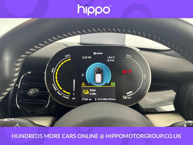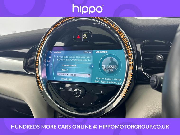 Presenting this MINI Electric Hatch, Cooper SE 32.6kWh Level 3 Hatchback 3dr Electric Auto (184 ps), with only 17, 707 miles. Finished in Enigmatic Black and equipped with a host of practical features, this car includes 17-inch Tentacle and Roulette Spoke alloy wheels, a panoramic glass sunroof, and automatic air conditioning with two-zone control for enhanced comfort. Technology features comprise an 8.8-inch LED-ringed touchscreen, Navigation Plus Pack, Bluetooth connectivity with audio streaming, and a Harman Kardon speaker system. The Driving Assistant Pack is complemented by cruise control, park assist, park distance control for front and rear, and a rear view camera for added ease. Inside, you will find heated seats, multifunction steering wheel in Walknappa leather, an Interior Light Pack, and FM/DAB digital radio. Hippo Approved is known for a wide selection of vehicles suited for various needs and budgets. Each car undergoes a rigorous 130-point quality and safety inspection at our state-of-the-art £3 million preparation centre, ensuring your peace of mind. Additionally, we offer tailored finance packages for personal and business use, making it easy to acquire your ideal car.