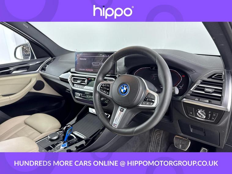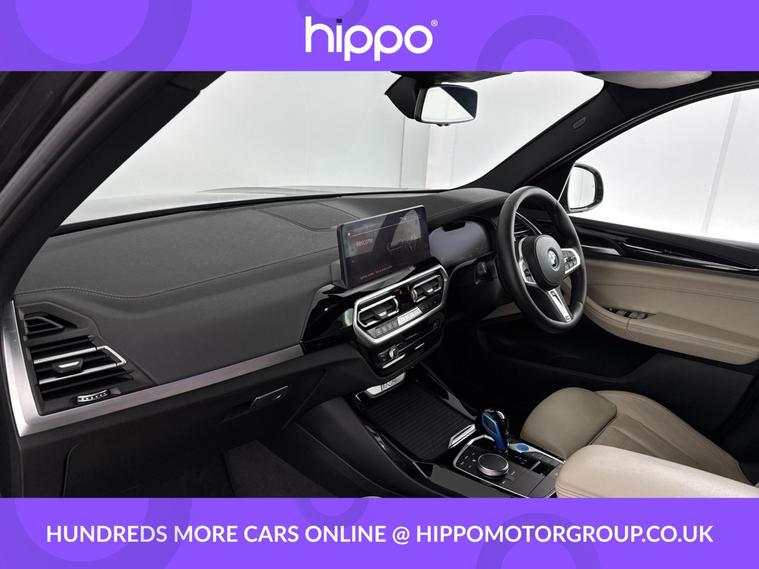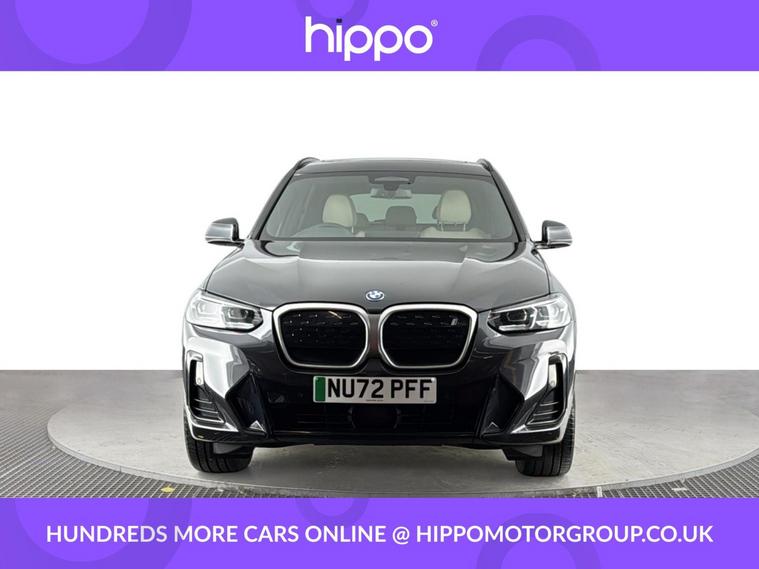 Presenting this BMW iX3 80kWh M Sport SUV 5dr Electric Auto (286 ps), with 53, 466 miles driven. This electric SUV combines modern efficiency with practical comfort, featuring 19-inch aerodynamic alloy wheels in Jet Black with bi-colour inserts and the distinguished M Sport Package. Enjoy a panoramic glass sunroof and automatic air conditioning for a pleasant cabin environment, no matter the season. Both the driver and front passenger benefit from heated seats, while the heated steering wheel adds an extra touch of comfort in colder weather. The iX3 comes equipped with front and rear parking sensors, a Reversing Assist Camera, and Parking Assistant, ensuring effortless manoeuvring and parking. Entertainment and connectivity are provided through a DAB digital radio and a high-quality stereo speaker system. Hippo Approved is known for a wide selection of vehicles suited for various needs and budgets. Each car undergoes a rigorous 130-point quality and safety inspection at our state-of-the-art £3 million preparation centre, ensuring your peace of mind. Additionally, we offer tailored finance packages for personal and business use, making it easy to acquire your ideal car.