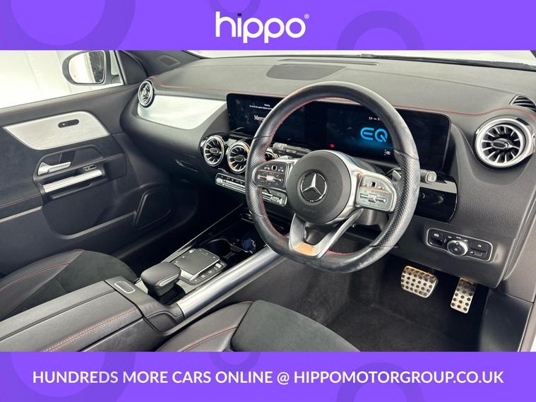 Presenting this Mercedes-Benz EQA, finished in Polar White, with 21, 913 miles on the clock. This EQA 250 66.5kWh AMG Line SUV 5dr Electric Auto (190 ps) has been meticulously maintained, with a full history of three services, the most recent recorded at 26, 000 miles. The vehicle boasts a set of 18-inch AMG light 5-spoke alloy wheels, adding a stylish accent to its exterior. As an all-electric SUV, it offers a refined and efficient driving experience, making it an ideal choice for those seeking comfort and innovation. The spacious five-door configuration ensures practicality, while the design and features reflect the quality expected from Mercedes-Benz. Hippo Approved is known for a wide selection of vehicles suited for various needs and budgets. Each car undergoes a rigorous 130-point quality and safety inspection at our state-of-the-art £3 million preparation centre, ensuring your peace of mind. Additionally, we offer tailored finance packages for personal and business use, making it easy to acquire your ideal car.