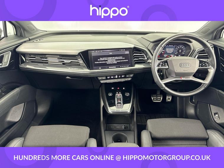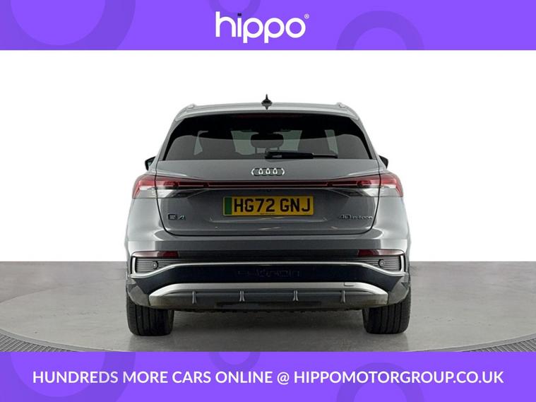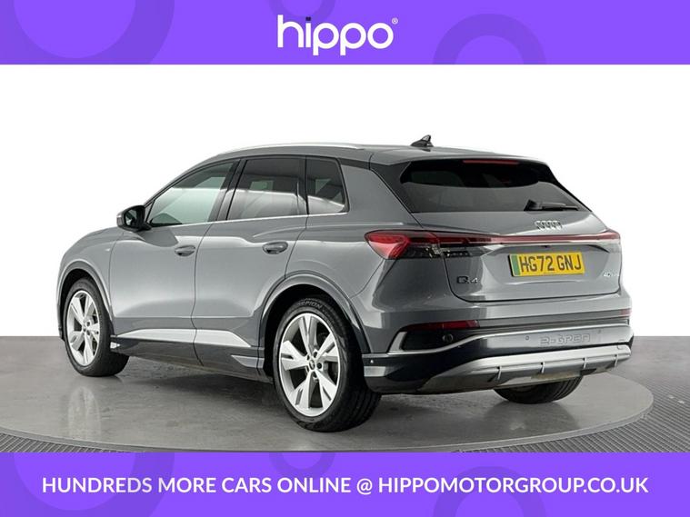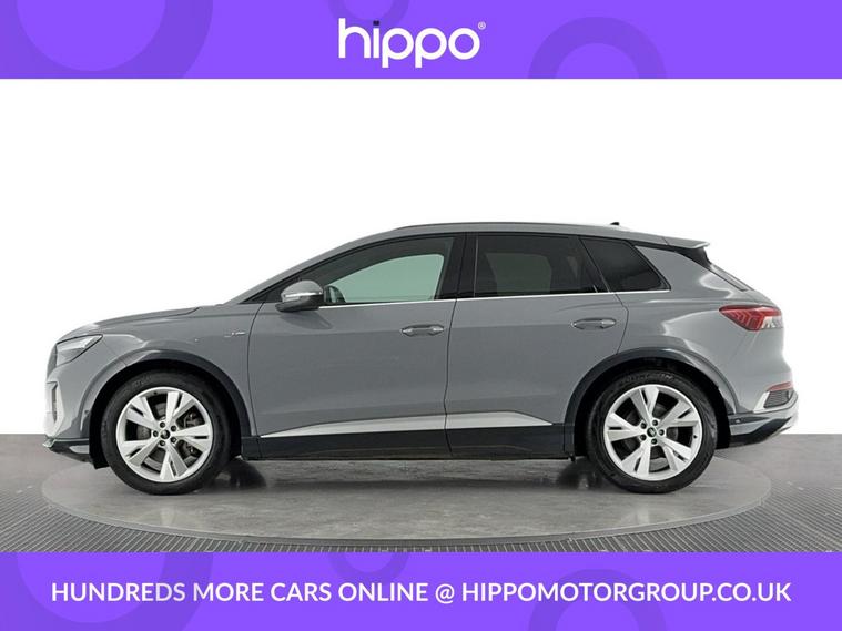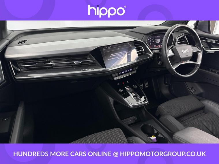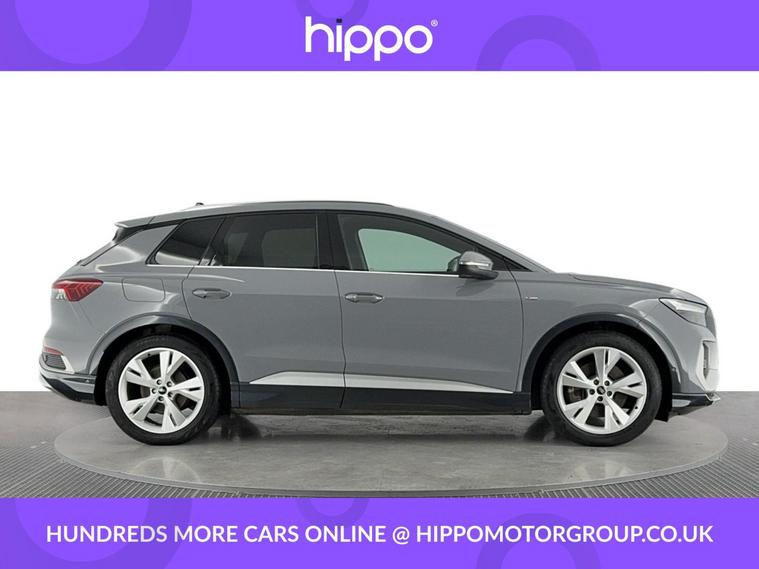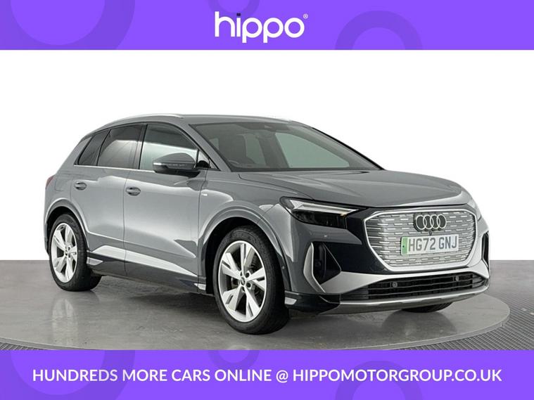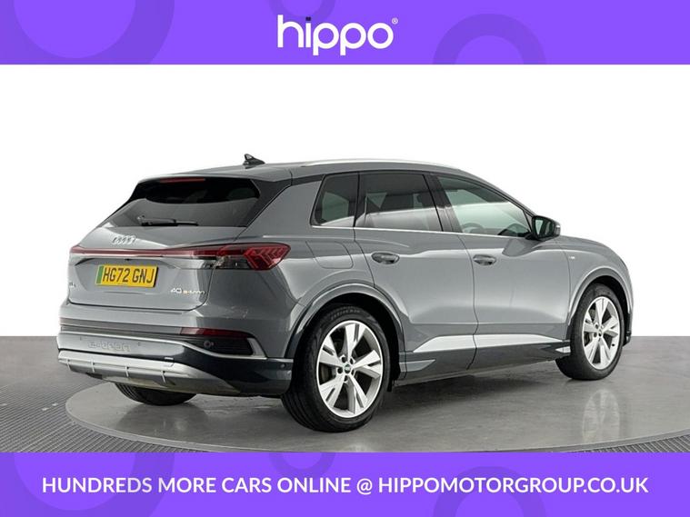 Presenting this Audi Q4 e-tron 40 S line SUV, offered with 42, 570 miles on the clock. This electric SUV features a powerful 82kWh battery and delivers 204 PS via an automatic transmission, providing efficient and reliable performance. This vehicle comes equipped with stylish 20-inch 5-Y-spoke alloy wheels and benefits from 3-zone electronic climate control for superior cabin comfort. The interior features heated front seats and a steering wheel with perforated leather grips, chrome-look trim, S Line emblem, and contrast stitching. For entertainment and navigation, the car offers the Audi Sound System, Audi Virtual Cockpit with a 10.25-inch display, and MMI Navigation Plus with a high-resolution 11.6-inch touchscreen. Connectivity and convenience are provided by Bluetooth interface, DAB digital radio, cruise control with speed limiter, and rear parking sensors. Privacy glass on the rear windows ensures added security and a refined appearance. Hippo Approved is known for a wide selection of vehicles suited for various needs and budgets. Each car undergoes a rigorous 130-point quality and safety inspection at our state-of-the-art £3 million preparation centre, ensuring your peace of mind. Additionally, we offer tailored finance packages for personal and business use, making it easy to acquire your ideal car.