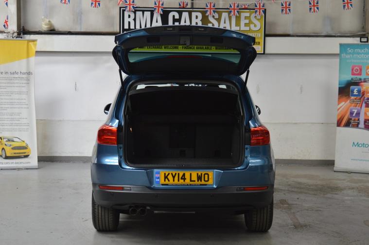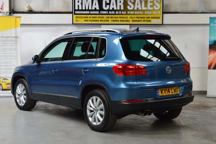 VOLKSWAGEN TIGUAN 2.0 TDi BLUEMOTION TECH MATCH 5dr 2WD DIESEL. IN PACIFIC BLUE WE ARE DELIGHTED TO OFFER FOR SALE THIS STUNNING LOW MILEAGE TIGUAN. IT IS IN PRISTINE CONDITION INSIDE AND OUT, THE BODYWORK IS FREE FROM ANY DINGS AND DENTS OR BLEMISHES AND THE INTERIOR IS SPOTLESSLY CLEAN AND FRESH. WE HAVE UNDERTAKEN A RECENT SERVICE TO INCLUDE A CAMBELT CHANGE WHICH INCLUDED 2 NEW TYRES. FEATURES INCLUDE DAYTIME RUNNING LIGHTS, FRONT FOGS, REAR PRIVACY GLASS, COLOUR CODED BUMPERS AND MIRRORS, ROOF RAILS, FRONT AND REAR PARKING SENSORS, CLOTH UPHOLSTERY, DUAL ZONE CLIMATE CONTROL, AIR CONDITIONING, HEATED STEERING WHEEL, ELECTRONIC PARKING BRAKE WITH AUTO HOLD, COLOUR TOUCH SCREEN, CD/DAB RADIO, AUX/USB/IPOD INTERFACE, BLUETOOTH TELEPHONE CONNECTIVITY, SATELLITE NAVIGATION, AUTO STOP/START, SPLIT/FOLD REAR SEATS, SPARE WHEEL, REMOTE CENTRAL LOCKING AND 2 x KEYS. THIS IS A REAL GEM, ONE NOT TO BE MISSED. AS WE ARE AN AA CARS DEALER THIS VEHICLE COMES WITH A FULL AA HISTORY CHECK AND ALSO 12 MONTHS AA BREAKDOWN COVER. EXTENDED AA WARRANTY AVAILABLE. WE ARE ALSO A MEMBER OF THE AA DEALER PROMISE SCHEME. NEW MOT ISSUED ON PURCHASE. WE PRIDE OURSELVES ON THE PRESENTATION OF OUR VEHICLES WHICH ARE FULLY VALETED AND PREPARED TO THE VERY HIGHEST OF STANDARDS. AS A RESULT WE FIRMLY BELIEVE THAT OUR FORECOURT IS UNRIVALLED AND OUR REPUTATION FOR SELLING PREMIUM USED CARS IS SECOND TO NONE. WALK AROUND VIDEO AND DELIVERY OPTIONS ARE AVAILABLE UPON REQUEST.