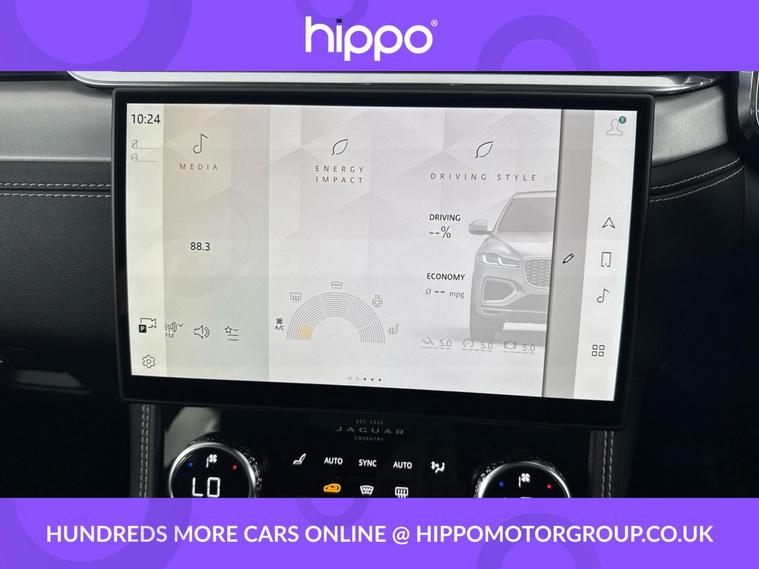 Hippo Approved is known for a wide selection of vehicles suited for various needs and budgets. Each car undergoes a rigorous 130-point quality and safety inspection at our state-of-the-art £3 million preparation centre, ensuring your peace of mind. Additionally, we offer tailored finance packages for personal and business use, making it easy to acquire your ideal car. Presenting the Jaguar F-PACE, a sophisticated SUV with a distinctive Santorini Black exterior. This 2.0 D200 MHEV R-Dynamic SE model has covered 43, 326 miles and is designed to deliver both performance and elegance. The vehicle features a fixed panoramic roof, providing a sense of openness and enhancing the overall driving experience. Notable for its 20in alloy wheels with a 5 split-spoke style (5036 design), the F-PACE boasts both style and functionality. For your convenience, this SUV is equipped with park assist technology and both front and rear parking aids, ensuring effortless manoeuvring in tight spaces. The privacy glass adds an extra touch of exclusivity, enhancing comfort and providing an added layer of discretion. With its Diesel Auto AWD engine complying with Euro 6 standards, the Jaguar F-PACE stands as a reliable, environmentally conscious choice.