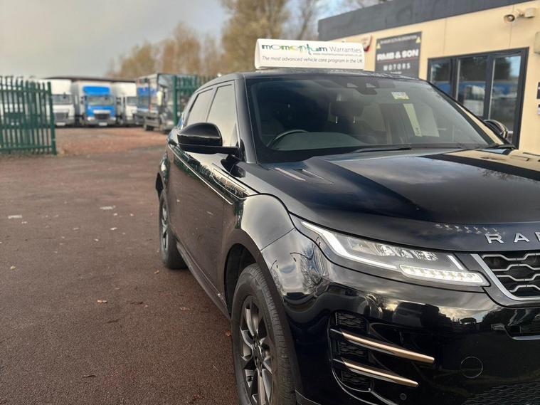 A smart and well presented Range Rover Evoque R Dynamic finished in black and offering a perfect blend of luxury performance and practicality. This example drives exactly as it should and will be supplied with 12 months MOT.Powered by the refined 2.0 D150 MHEV diesel engine paired with a smooth automatic gearbox and four wheel drive system the Evoque delivers confident performance in all conditions while remaining economical and fully Euro 6 and ULEZ compliant.The R Dynamic specification adds a sporty edge with enhanced styling and a well appointed interior making this a highly desirable example.Key Features and Specification2.0 D150 MHEV diesel engineAutomatic gearboxFour wheel driveR Dynamic specificationEuro 6 and ULEZ compliantTouchscreen infotainment systemSatellite navigation and BluetoothDigital cockpit displayDual zone climate controlCruise controlFront and rear parking sensorsAlloy wheelsISOFIX child seat mountsVehicle DetailsYear 2020Registration LR20 EWFMileage 55110 milesFuel Diesel MHEVTransmission AutomaticColour BlackBody type SUVBuy with Confidence from RMB and Son Motors12 months MOT supplied6 month warranty extendableFull pre delivery inspection and health checkFresh professional valetFinance availablePart exchange welcomeNationwide delivery available