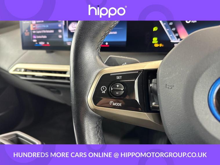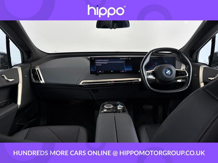 Presenting this BMW iX 40 76.6kWh M Sport SUV 5dr Electric Auto xDrive, finished in stylish Black Sapphire with 21in Bi-Colour Aero alloy wheels (1012 style) for an eye-catching yet refined appearance. With 38, 257 miles on the clock and having received its last service at 23, 000 miles, this vehicle is equipped with desirable features, including sun protection glass for added comfort and privacy. Powered by an all-electric drivetrain delivering 326 ps, the iX offers smooth, responsive performance and efficiency, further enhanced by the advanced 11kW charging capability. Inside, the spacious cabin benefits from the quality materials and thoughtful ergonomics synonymous with BMW M Sport models, ensuring both driver and passengers travel in comfort. This model represents a smart choice for those seeking innovation and practicality in a modern SUV. Hippo Approved is known for a wide selection of vehicles suited for various needs and budgets. Each car undergoes a rigorous 130-point quality and safety inspection at our state-of-the-art £3 million preparation centre, ensuring your peace of mind. Additionally, we offer tailored finance packages for personal and business use, making it easy to acquire your ideal car.