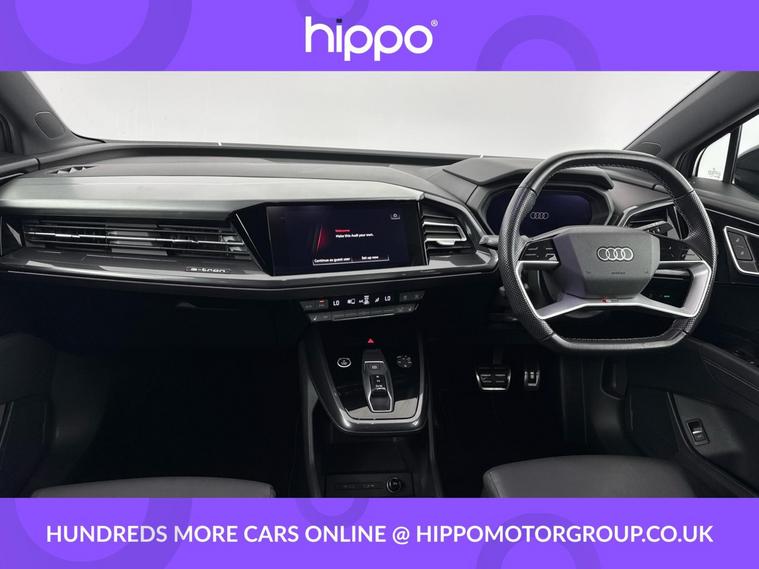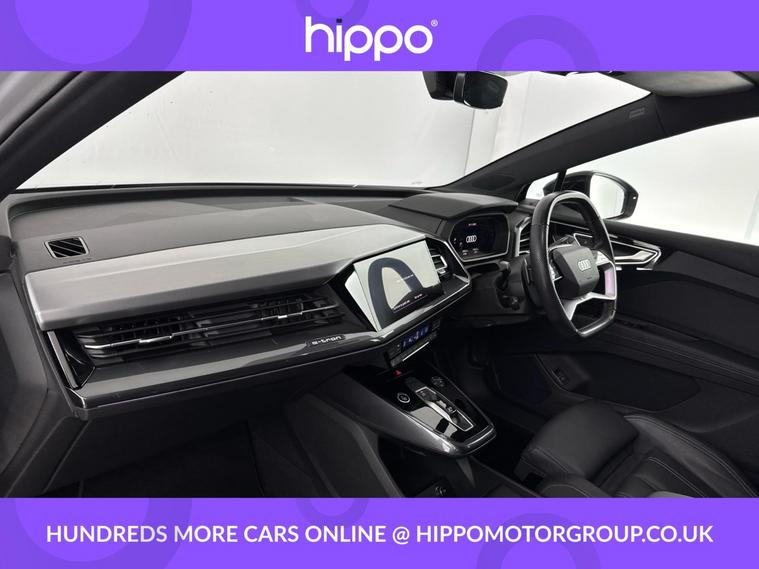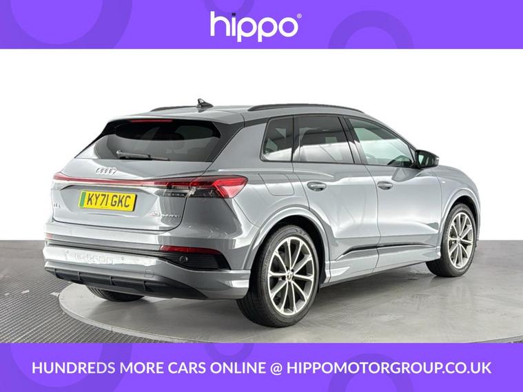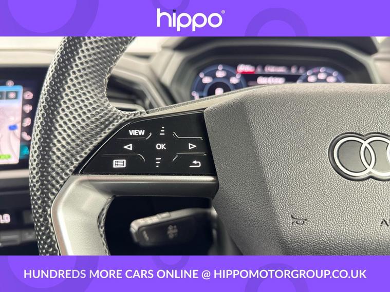 Presenting this Audi Q4 e-tron 40 Edition 1 SUV, offering exceptional electric performance with 204 PS and an 82kWh battery, having covered 39, 842 miles. The vehicle stands out with striking 20-inch 5-V-Spoke Polygon Audi Sport alloy wheels in matt titanium grey with gloss turned finish. The interior features 3-zone electronic climate control for personal comfort, heated front seats, and privacy glass on rear windows for enhanced cabin seclusion. Enjoy advanced technology with the 10.25-inch Audi Virtual Cockpit display, Bluetooth interface, and DAB digital radio. Navigate with ease using MMI Navigation Plus and its high-resolution 11.6-inch touchscreen, while rear parking sensors assist for confident manoeuvring. Charging flexibility is provided via AC and DC access points conveniently located on the rear right. Additional highlights include a multi-function, flat-top and bottom sport leather steering wheel with shift paddles for recuperation, and cruise control with speed limiter for relaxed motorway journeys. Hippo Approved is known for a wide selection of vehicles suited for various needs and budgets. Each car undergoes a rigorous 130-point quality and safety inspection at our state-of-the-art £3 million preparation centre, ensuring your peace of mind. Additionally, we offer tailored finance packages for personal and business use, making it easy to acquire your ideal car.