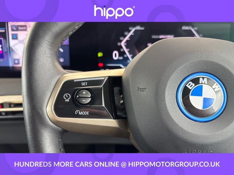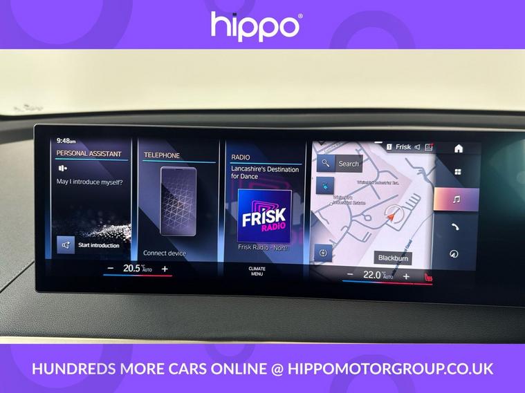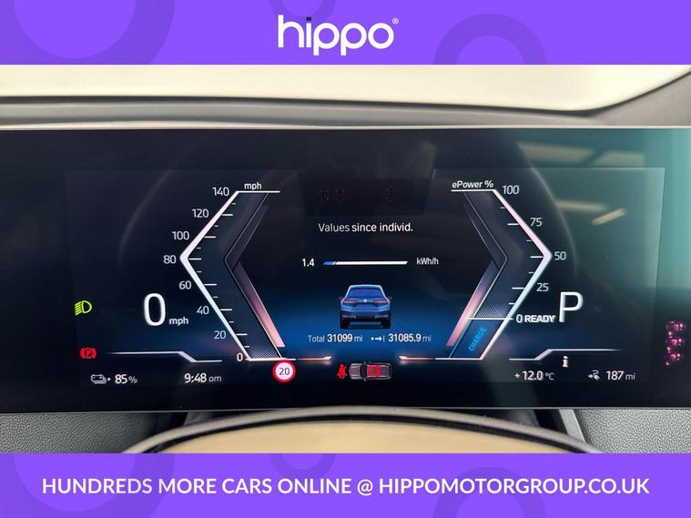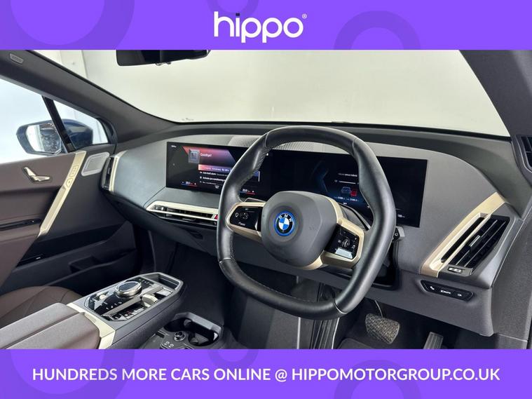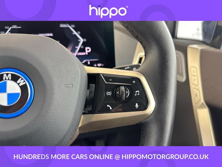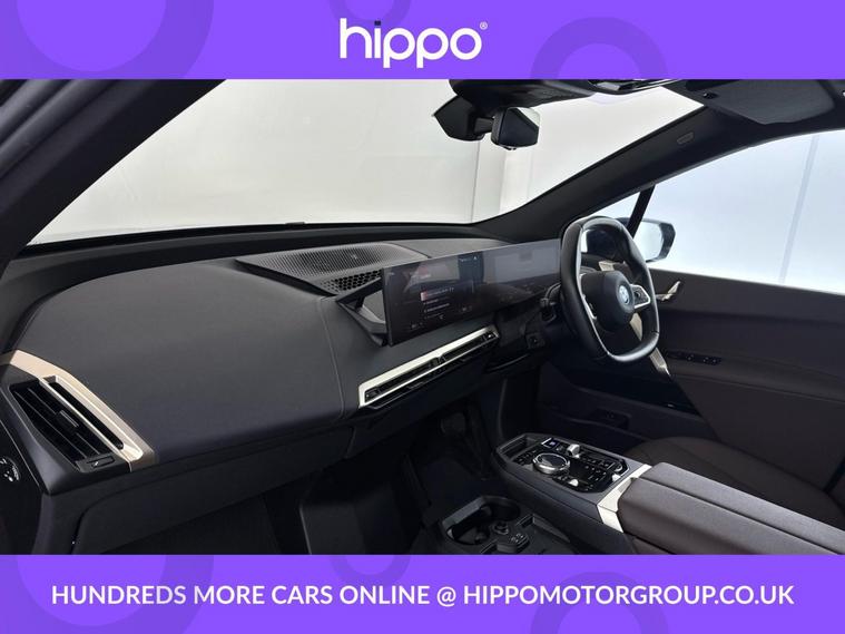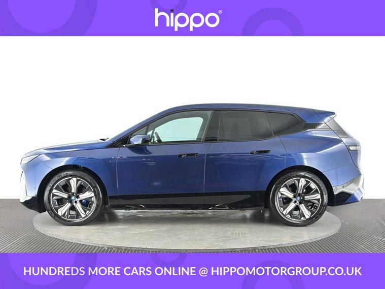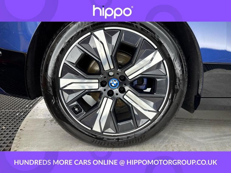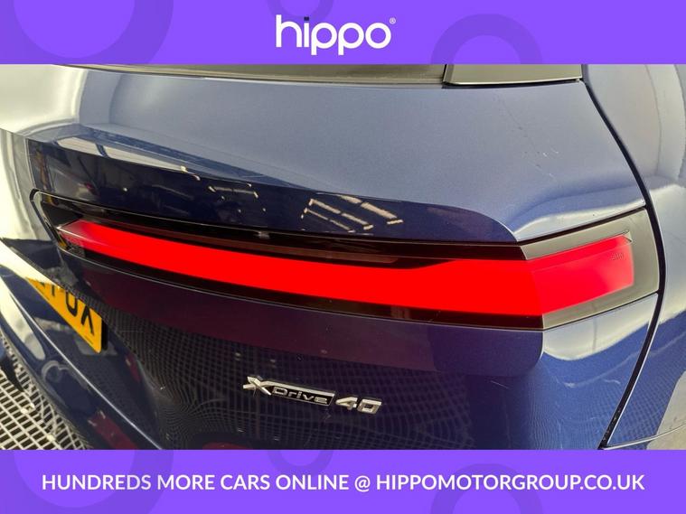 Presenting this BMW iX 40 76.6kWh M Sport SUV 5dr Electric Auto xDrive, finished in striking Phytonic Blue and showing 30, 965 miles. This well-specified vehicle is equipped with the advanced Technology Plus Pack, Parking Assistant Plus, and the desirable Skylounge Pack, offering enhanced comfort and convenience. The interior benefits from an Interior Camera, automatic four-zone air conditioning, a climate comfort windscreen, and the acclaimed BMW Live Cockpit Plus for seamless connectivity. For entertainment, a Harman Kardon Surround Audio Sound System and DAB Digital Radio are included, while heated front seats ensure comfort in all conditions. The M Sport Package not only adds a dynamic look but complements the 21-inch Bi-Colour Aero alloy wheels (1012 style), enhancing the vehicle's road presence. Features such as cruise control with braking function, Parking Assistant, and BMW Iconic Sounds - Electric further support a rewarding and refined driving experience. Hippo Approved is known for a wide selection of vehicles suited for various needs and budgets. Each car undergoes a rigorous 130-point quality and safety inspection at our state-of-the-art £3 million preparation centre, ensuring your peace of mind. Additionally, we offer tailored finance packages for personal and business use, making it easy to acquire your ideal car.