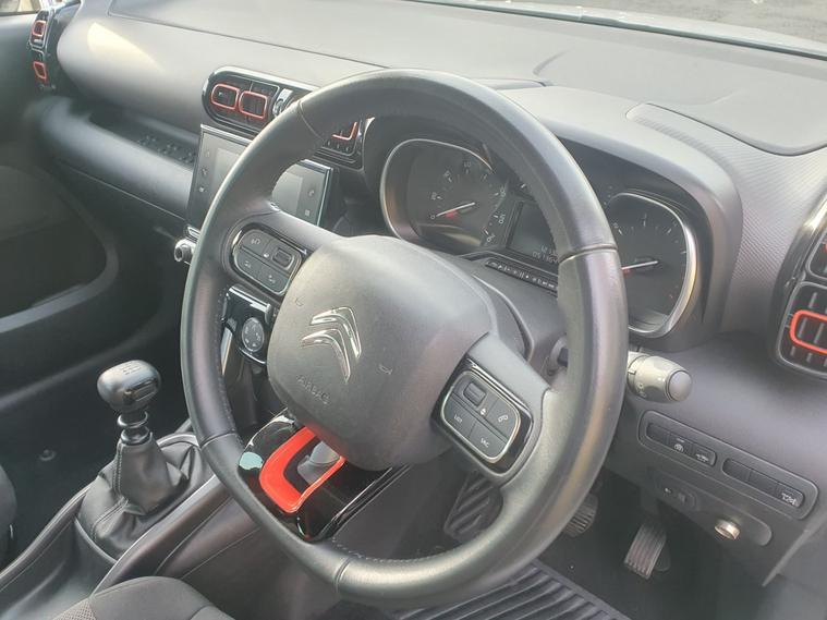 7" colour touch screen, Citroen connected nav with connect box and emergency assist system, Coffee Break Alert, Cruise control, speed limiter, Lane departure warning system, Mirror screen compatible with Apple Carplay and Andriod auto, Rear parking sensors, Speed limit recognition and recommendation, Variable PAS, Bluetooth hands free and media streaming with USB socket and jack, Citroen connected DAB radio with 6 speakers, Steering wheel mounted controls for stereo and telephone, Automatic lights, Automatic windscreen wipers, Electric front windows + one touch + anti-pinch, Electric rear windows + anti-pinch, Electrically adjustable, heated and folding door mirrors, Front fog lights with cornering function, Halogen headlights with LED daytime running lights, 60/40 split folding rear seat, Automatic air conditioning, ISOFIX outer rear seats mounting points including top tether, Tilt adjustable rear seats (Two positions), ABS with Electronic brakeforce distribution and Emergency braking assistance, Active safety brake, Airbags - Driver/front passenger, front lateral and curtain, Drivers/passengers and rear seats unfastened seat belt warning, Electronic stability control, Forward collision alert, Hill start assist function, Alarm, Automatic boot locking, Automatic door locking, Immobiliser, Keyless entry and start, Remote central locking + deadlocks, 17" Diamond cut 4 ever alloy wheels