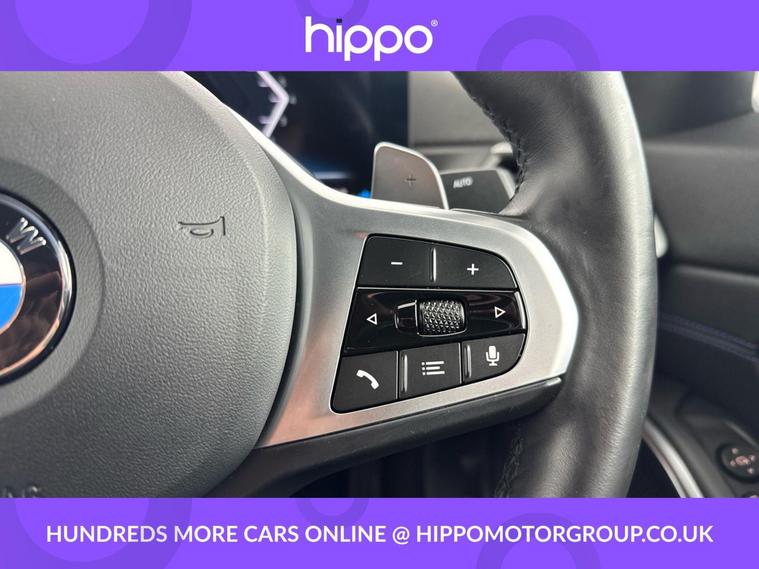 BMW 3 Series 2.0 320i M Sport Saloon, Automatic Petrol, Euro 6 (s/s), generating 184 PS, with a recorded mileage of 25, 002 miles. This model is equipped with 18-inch Double-Spoke Style 848 M light alloy wheels in a striking bicolour finish and features an M Aerodynamics package, delivering both style and enhanced performance. The M Sport package includes a M Sport leather steering wheel and heated seats for driver and front passenger, providing a comfortable and engaging driving experience. Benefit from automatic air conditioning, cruise control with brake function, and the BMW Live Cockpit Plus for a seamless journey. The multifunction steering wheel and Parking Assistant add convenience, while the DAB tuner and stereo speaker system offer quality audio entertainment on the road. This vehicle is fitted with mixed tyres for balanced performance. Hippo Approved is known for a wide selection of vehicles suited for various needs and budgets. Each car undergoes a rigorous 130-point quality and safety inspection at our state-of-the-art £3 million preparation centre, ensuring your peace of mind. Additionally, we offer tailored finance packages for personal and business use, making it easy to acquire your ideal car.