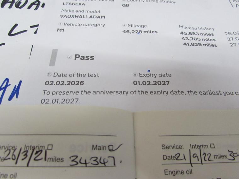 FULL HISTORY - FULL MOT - EXCEPTIONALLY TIDY CAR - AA APPROVED DEALER The 2016 Vauxhall Adam Slam is a stylish, top-trim urban hatchback featuring a 1.4L engine, lowered sports suspension, 17-inch Hurricane alloy wheels, and a signature two-tone ""Black Jack"" roof/mirror combo. Key features include LED daytime running lights, part-leather sports seats, electronic climate control, Bluetooth connectivity, and a multi-function steering wheel. WE ARE AN AA APPROVED DEALER OF 25 YEARS STANDING - AA WARRANTY DEALER