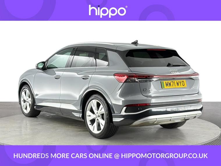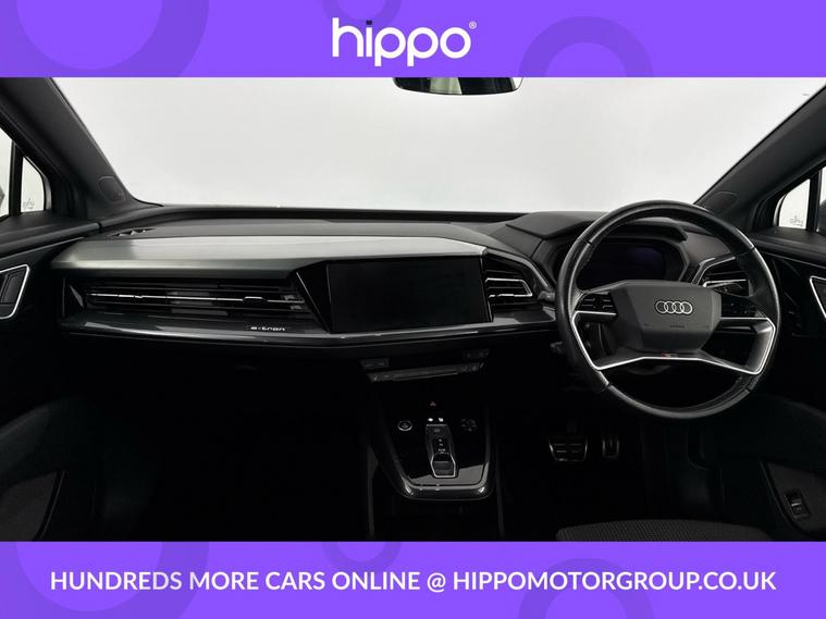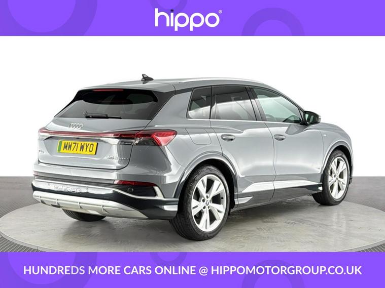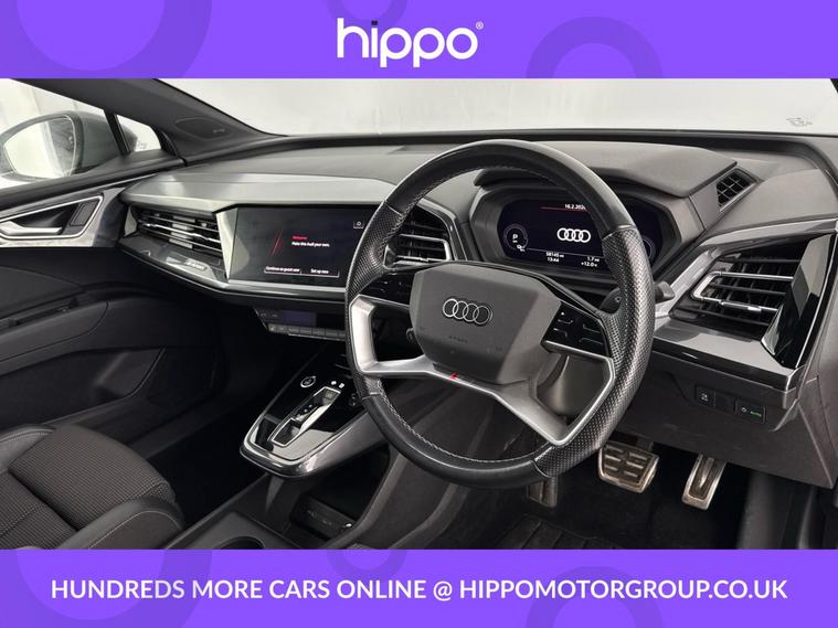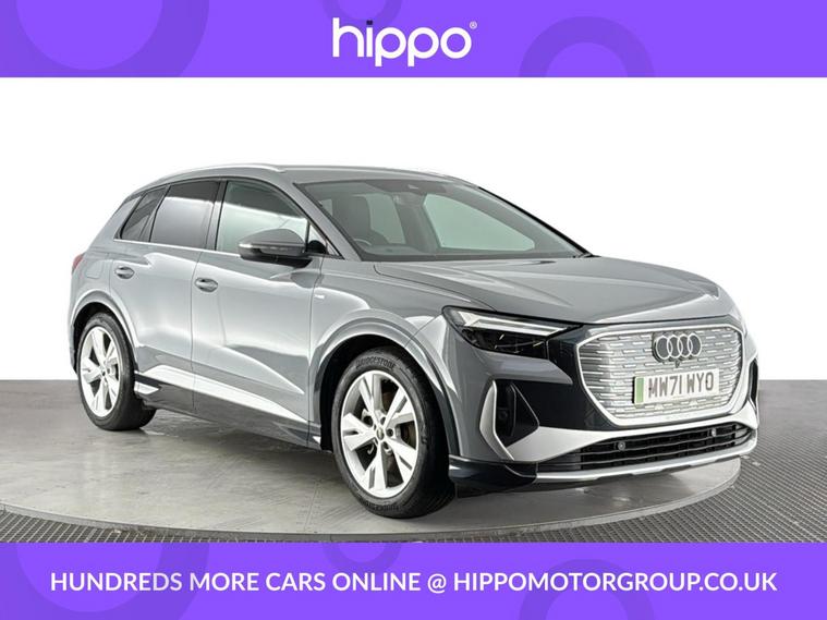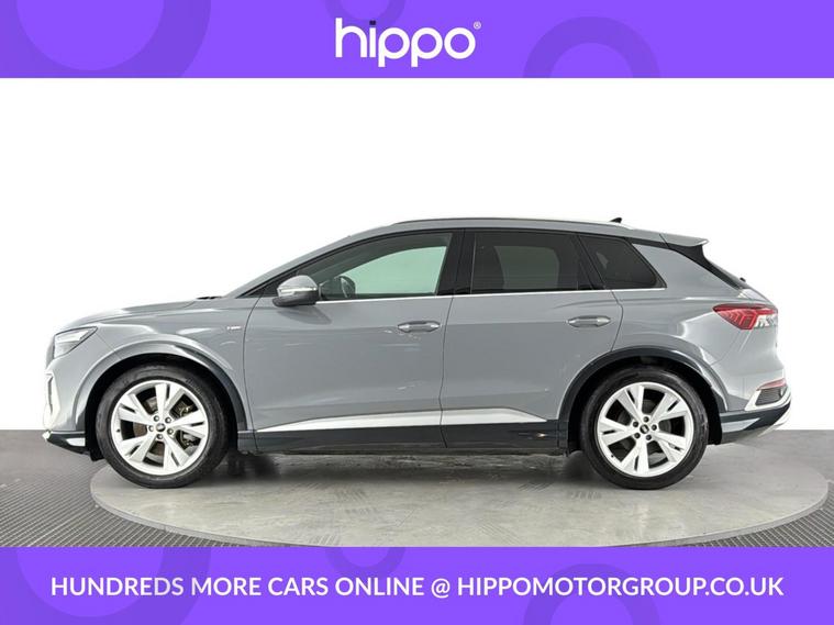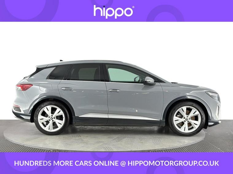 Presenting this Audi Q4 e-tron 40 S line SUV 5dr Electric Auto, offering 204 PS of fully electric performance and equipped with a substantial 82kWh battery. This example has covered 58, 141 miles and benefits from a consistent maintenance record, having received three services--the last at 42, 000 miles. Key features enhancing your driving experience include the desirable Comfort and Sound Package, heated front seats for added warmth on colder days, and rear parking sensors to aid manoeuvring in tight spaces. With its blend of advanced technology and quality finishes, this Q4 e-tron delivers practicality and refinement for everyday use. The spacious SUV body style ensures ample room for passengers and luggage alike, while the electric powertrain offers both efficiency and an engaging drive. Hippo Approved is known for a wide selection of vehicles suited for various needs and budgets. Each car undergoes a rigorous 130-point quality and safety inspection at our state-of-the-art £3 million preparation centre, ensuring your peace of mind. Additionally, we offer tailored finance packages for personal and business use, making it easy to acquire your ideal car.