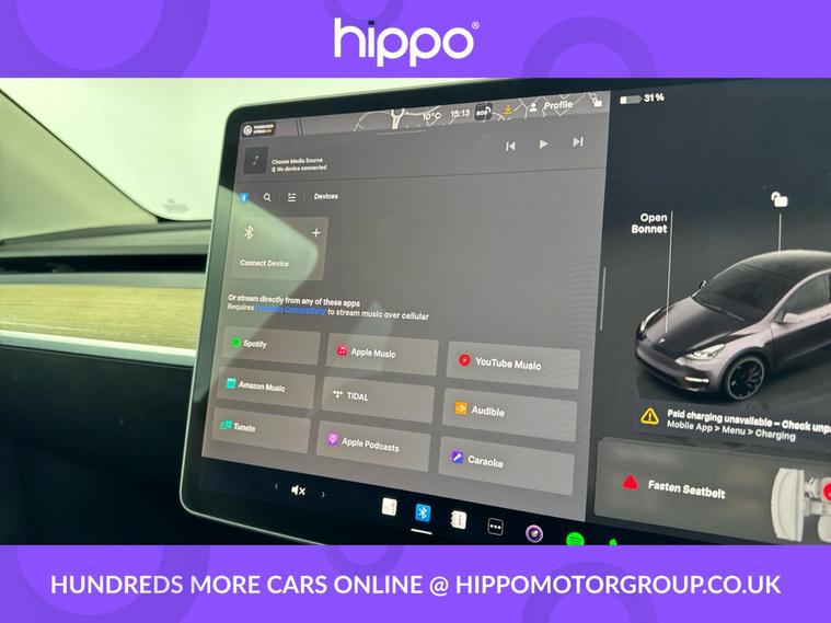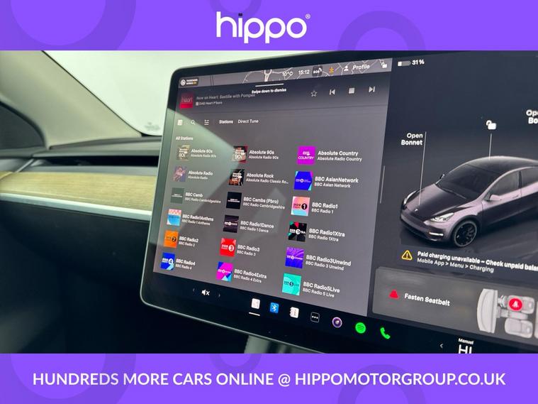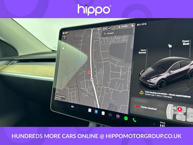 Presenting this Tesla Model Y (Dual Motor) Performance SUV 5dr Electric Auto 4WDE, boasting a powerful 426 bhp electric drivetrain and a refined driving experience. With 60, 727 miles recorded, this vehicle combines performance with practicality, perfect for those seeking advanced electric mobility. The Model Y features all-wheel drive for enhanced traction and stability, making it suitable for a range of road conditions. Inside, you'll benefit from dual-zone climate control, ensuring a comfortable environment for all passengers, regardless of outside weather. The large 15-inch touchscreen centralises vehicle information, entertainment, and navigation, offering onboard maps and real-time route guidance at your fingertips. The spacious SUV layout provides ample interior space and practicality, ideal for families or those with active lifestyles. Hippo Approved is known for a wide selection of vehicles suited for various needs and budgets. Each car undergoes a rigorous 130-point quality and safety inspection at our state-of-the-art £3 million preparation centre, ensuring your peace of mind. Additionally, we offer tailored finance packages for personal and business use, making it easy to acquire your ideal car.