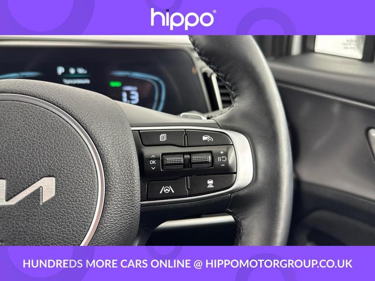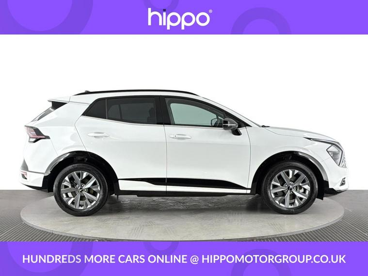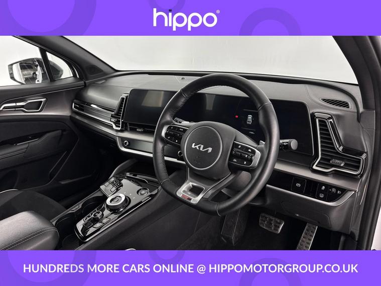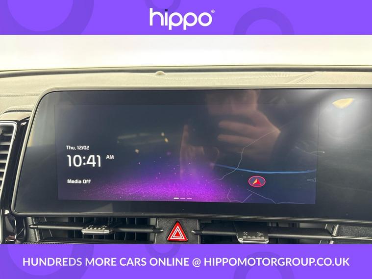 Kia Sportage 1.6 h T-GDi GT-Line SUV 5dr Petrol Hybrid Auto Euro 6 (s/s) (207 bhp), with only 16, 902 miles. This model benefits from a 12.3in touchscreen navigation system alongside a 4.2in driver display screen, providing clear information and entertainment at your fingertips. It stands on 18in alloy wheels paired with 235/55 R18 tyres for a refined appearance and confident drive. The cabin features automatic air conditioning with additional rear air conditioning, ensuring comfort for all occupants, while heated front seats and a heated leather steering wheel add further convenience. Safety and ease of use are supported by front and rear parking sensors, a reversing camera system, and smart cruise control with stop and go functionality. Enhanced connectivity is provided via Bluetooth, and privacy glass for the rear windows and tailgate adds a sophisticated touch. Hippo Approved is known for a wide selection of vehicles suited for various needs and budgets. Each car undergoes a rigorous 130-point quality and safety inspection at our state-of-the-art £3 million preparation centre, ensuring your peace of mind. Additionally, we offer tailored finance packages for personal and business use, making it easy to acquire your ideal car.