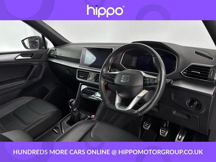 Presenting this SEAT Tarraco 1.5 EcoTSI EVO FR Sport SUV, finished in striking Deep Black with stylish 20-inch machined Cosmo Grey alloy wheels. Powered by a responsive 1.5-litre petrol engine, this manual, Euro 6 (s/s) model offers 150 PS and a practical blend of performance and efficiency for everyday driving. With 26, 438 miles on the clock and evidence of a service at 20, 000 miles, this vehicle demonstrates a responsible maintenance record. The FR Sport specification delivers enhanced comfort and aesthetic appeal, making this SUV a compelling choice for those seeking a versatile and modern family vehicle. Hippo Approved is known for a wide selection of vehicles suited for various needs and budgets. Each car undergoes a rigorous 130-point quality and safety inspection at our state-of-the-art £3 million preparation centre, ensuring your peace of mind. Additionally, we offer tailored finance packages for personal and business use, making it easy to acquire your ideal car.