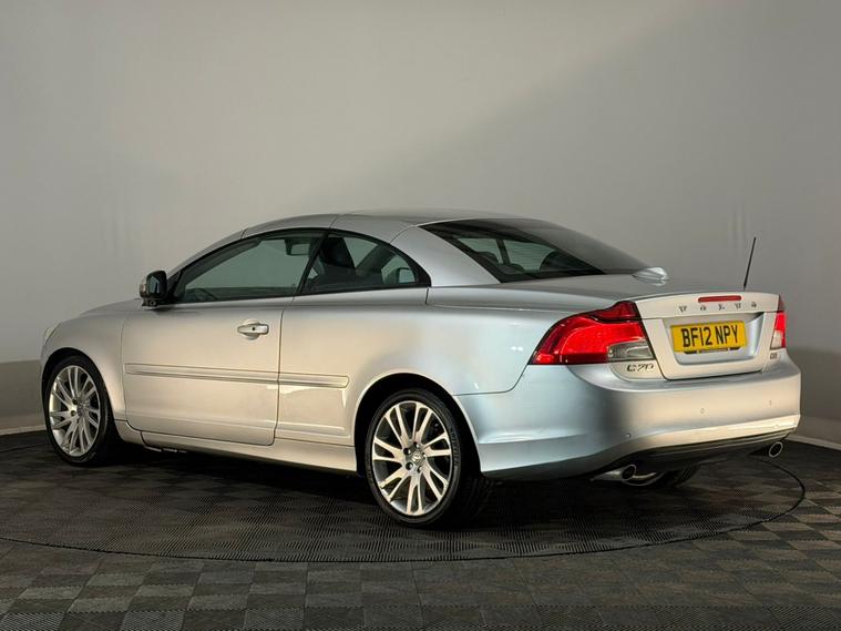 2012 Volvo C70 SE Lux D3 2.0 diesel automatic convertible finished in silver and offered by Noahs Automotive Ltd in Nuneaton. This luxurious refined and practical four seater convertible combines premium SE Lux specification strong diesel efficiency and open top driving pleasure making it an outstanding choice for year round premium motoring everyday comfort or weekend cruising. The two litre D3 diesel engine produces 147 BHP and is paired with a smooth automatic Tiptronic gearbox delivering confident acceleration relaxed cruising and combined fuel economy of 44 MPG. This vehicle has 1 owner from new and benefits from service history and this vehicle will come with a fresh 12 month MOT ready for the new owner. The high specification SE Lux trim includes eighteen inch alloy wheels front and rear parking sensors headlight washers front fog lights air conditioning digital dual zone climate control cruise control BLIS pop up digital display Volvo CD AM FM stereo system with satellite navigation Dynaudio premium sound system full black leather interior front heated seats front electric powered seats with front three stage memory setting seat ISOFIX anchor points front and rear electric windows rear heated screen electric powerfold door mirrors leather arm rest cup holders adjustable steering column and multifunctional steering wheel. V5 logbook present and supplied with two keys this well equipped Volvo C70 SE Lux represents superb value in the premium convertible market and is ready to drive away. Viewings are available seven days a week including evenings by appointment with same day drive away possible and nationwide delivery in 24 to 72 hours. Part exchanges are welcome with fast fair valuations offered. Contact Noahs Automotive Ltd today to reserve this vehicle arrange a viewing or request further details including HD photos or live video walkarounds.