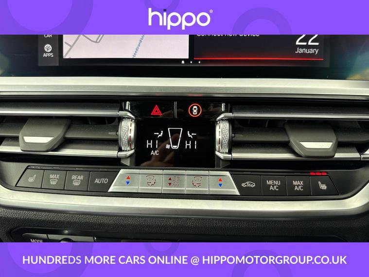 Presenting this BMW 3 Series 2.0 320i M Sport Saloon 4dr Petrol Auto Euro 6 (s/s) (184 ps), displaying just 18, 835 miles. This vehicle features striking 18-inch M Light Double-Spoke alloy wheels in Bicolour Orbit Grey, complemented by the M Sport Package and M leather steering wheel for a refined yet sporty driving environment. The interior benefits from automatic three-zone air conditioning and heated front seats, creating comfort in all conditions. The BMW Live Cockpit Professional delivers a modern driving experience, supported by Bluetooth hands-free connectivity and a DAB digital radio for seamless communication and entertainment on the move. Convenience is enhanced with cruise control (including brake function) and a Parking Assistant with Park Distance Control for both front and rear, making busy journeys and tight parking situations effortless. The USB audio interface offers practical multimedia options. Hippo Approved is known for a wide selection of vehicles suited for various needs and budgets. Each car undergoes a rigorous 130-point quality and safety inspection at our state-of-the-art £3 million preparation centre, ensuring your peace of mind. Additionally, we offer tailored finance packages for personal and business use, making it easy to acquire your ideal car.