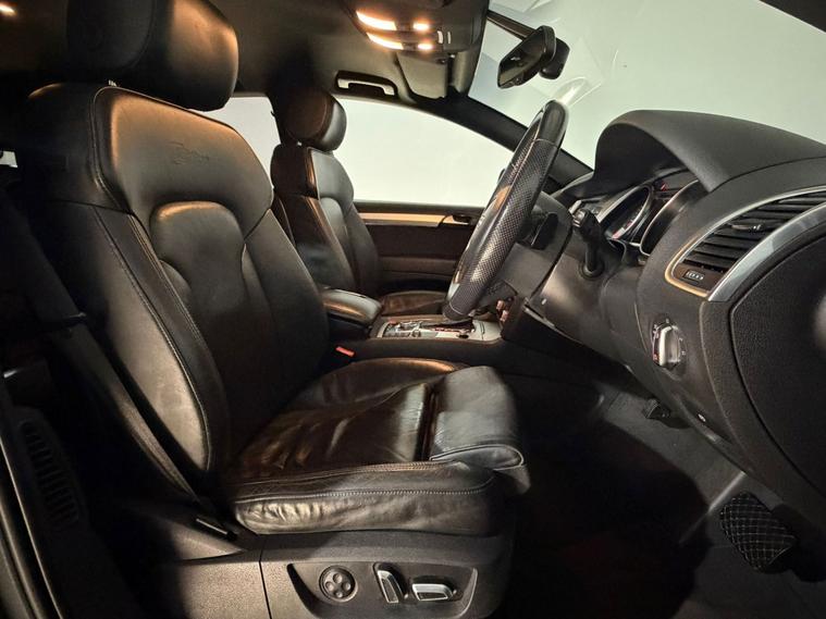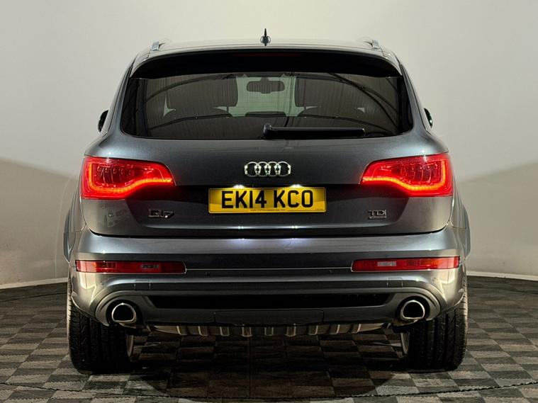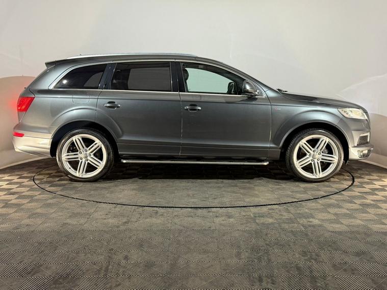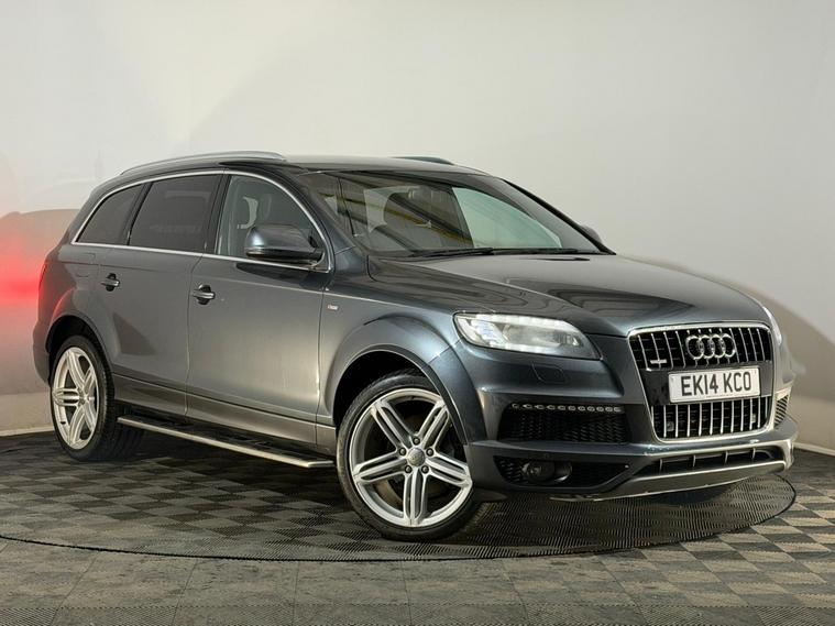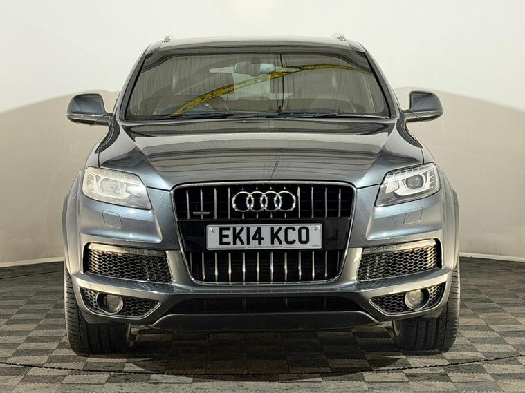 2014 Audi Q7 S Line Plus 3.0 diesel TDI automatic 7 seater Quattro 4WD 4x4 SUV finished in grey and offered by Noahs Automotive Ltd in Nuneaton. This commanding premium full size seven seater SUV combines sharp S Line styling powerful V6 diesel performance and generous specification making it an outstanding choice for large families towing heavy loads or long distance luxury. The three litre TDI engine produces 241 BHP and is paired with a smooth automatic Tiptronic gearbox with paddle shift delivering confident acceleration relaxed cruising and solid economy. This vehicle has had two previous owners and benefits from service history, The high specification S Line Plus trim includes twenty one inch alloy wheels bi xenon headlights LED daytime running lights roof rails rear privacy glass side steps air conditioning digital dual zone climate control cruise control seven seats full black S Line leather interior front six stage heated seats front electric powered seats ISOFIX anchor points Audi touchscreen digital display with satellite navigation reversing camera voice control Bluetooth audio and telephone front and rear electric windows rear heated screen automatic lights automatic wipers auto tinting rear view mirror electric powerfold door mirrors adjustable steering column multifunctional steering wheel and electric park brake. V5 logbook present and supplied with two keys this well equipped Audi Q7 S Line Plus represents superb value in the premium seven seater SUV market and is ready to drive away. Viewings are available seven days a week including evenings by appointment with same day drive away possible and nationwide delivery in 24 to 72 hours. Part exchanges are welcome with fast fair valuations offered. Contact Noahs Automotive Ltd today to reserve this vehicle arrange a viewing or request further details including HD photos or live video walkarounds.