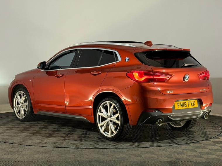 2018 BMW X2 xDrive20d M Sport 2.0 diesel automatic 4WD SUV finished in orange and offered by Noahs Automotive Ltd in Nuneaton. This stylish premium compact crossover combines sharp M Sport design powerful diesel performance and excellent efficiency making it an outstanding choice for urban driving commuting or everyday premium use with very low running costs. The two litre diesel engine produces 190 BHP and is paired with a smooth automatic Tiptronic gearbox with paddle shift and sports mode delivering confident acceleration relaxed cruising and combined fuel economy of 61 MPG with just 195 pounds annual road tax. As a Euro 6 model this BMW is ULEZ compliant for unrestricted city driving. With 1 previous owner this vehicle offers great peace of mind. MOT is valid until December 2026. The high specification M Sport trim includes twenty inch alloy wheels electric sunroof bi xenon headlights LED daytime running lights front fog lights rear privacy glass audio and visual rear parking sensors keyless go stop start technology air conditioning digital dual zone climate control cruise control half alcantara interior front three stage heated seats height adjustable front seats ISOFIX anchor points BMW i-Drive touchscreen digital display reversing camera voice control Bluetooth audio and telephone USB audio and charging input front and rear electric windows rear heated screen automatic lights electric mirrors leather arm rest cup holders vehicle dynamic modes and electric park brake. V5 logbook present and supplied with two keys this well equipped BMW X2 xDrive20d M Sport represents superb value in the premium compact SUV market and is ready to drive away. Viewings are available seven days a week including evenings by appointment with same day drive away possible and nationwide delivery in 24 to 72 hours. Part exchanges are welcome with fast fair valuations offered. Contact Noahs Automotive Ltd today to reserve this vehicle arrange a viewing or request further details including HD photos or live video walkarounds.