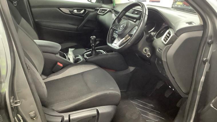 Child locks on rear doors, Curtain airbags, Driver/front passenger airbag, Front passenger airbag deactivation, Height adjustable front seatbelts, Side airbags, Three 3 point rear seatbelts, Tyre pressure monitoring system, Alarm, Immobiliser, Remote central locking, Anti-lock Brake System, brake assist and Electronic Brakeforce Distribution, Electronic parking brake, Electronic Stability Programme + traction control, Forward emergency braking, Hill start assist, Diesel particulate filter, Anti dazzle rear view mirror, Body colour door mirrors, Electric folding and heated door mirrors, Electrically adjustable door mirrors, Rain sensor windscreen wipers, Rear wiper, Body colour bumpers, Body colour door handles, Chrome window surround, Rear roof spoiler, Solid paint, Automatic headlamp activation, Front fog lights, Halogen headlights, High beam assist, LED daytime running lights, LED indicators in door mirrors, 3 height adjustable rear headrests, 60/40 split folding rear seat, Driver + front passenger lumbar support, Front headrests, Front seat belt pre-tensioners with load limiters, Height adjustable driver's seat, Height adjustable front headrests, Height adjustable passenger seat, Isofix child seat preparation, Rear headrests, Piano black interior trim, Ambient interior lighting, Boot light, Illuminated electric window switch, Luggage compartment lighting, 2 X front 12v power sockets, Centre console with armrest, Chrome interior door handles, Cloth upholstery, Configurable luggage board system, Front and rear door pockets with bottle holders, Leather gearknob, Leather knee rest, Leather steering wheel, Parcel shelf, Rake/reach adjustable steering wheel, Rear armrest with 2 cupholders, Dual zone climate control, Pollen filter, Stop/start system, Cruise control, Electric speed sensitive power steering, Front and rear parking sensors, Lane departure warning system, Rear view camera, Speed limiter, Traffic sign recognition, 5"" TFT driver information centre, Nissan connect sat nav system, Outside temperature display, Service interval indicator, Trip computer, Bluetooth phone integration system, 'Shark fin' mobile antenna, 6 speakers, DAB Digital radio, Radio/CD, Steering wheel mounted audio controls, USB/aux input socket, 17"" Aero alloy wheels, Tyre puncture repair kit