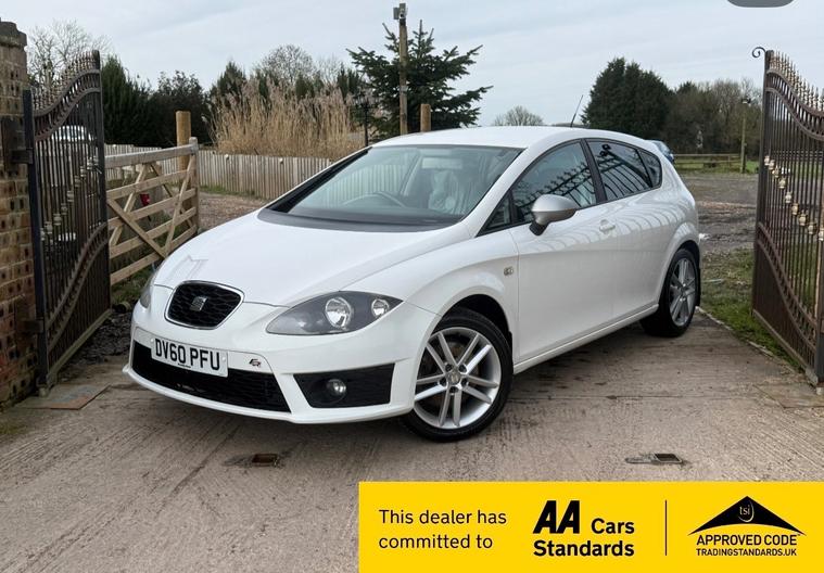 We are delighted to present to you this lovely example of a 2010(60) Seat Leon 2.0 TDI CR FR 170 BHP finished in white with black cloth interior. This Leon comes with full service history including Timing belt and water pump replacement, 2 keys, M.O.T September 2026, Parking sensors, Cruise control, Auto lights and wipers, USB/AUX, On board computer, Dual climate control, Air conditioning, Clean and tidy car inside and out, AA approved garage, Free 12 months AA breakdown cover, HPI clear, Part ex welcome, Open 7 days a week (APPOINTMENT ONLY)