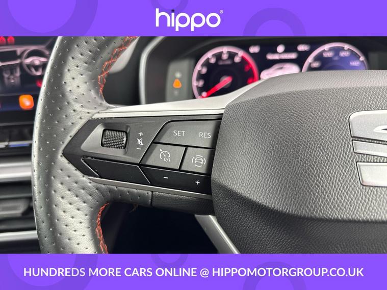 Presenting this SEAT Leon 1.5 eTSI MHEV FR Hatchback 5dr, finished in Midnight Black, with 48, 101 miles on the clock. Powered by a Euro 6 compliant petrol hybrid engine paired with a smooth DSG automatic transmission, it delivers a balanced blend of performance and efficiency. Notable features include striking 17-inch Dynamic Bi-Spoke alloy wheels and a cruise control system with speed limiter, ensuring both comfort and convenience on longer journeys. Inside, the FR specification offers a contemporary and welcoming environment, complemented by practical hatchback versatility. The mild hybrid technology is designed to reduce emissions and improve fuel economy, making this Leon a sensible choice for those mindful of efficiency. Hippo Approved is known for a wide selection of vehicles suited for various needs and budgets. Each car undergoes a rigorous 130-point quality and safety inspection at our state-of-the-art £3 million preparation centre, ensuring your peace of mind. Additionally, we offer tailored finance packages for personal and business use, making it easy to acquire your ideal car.