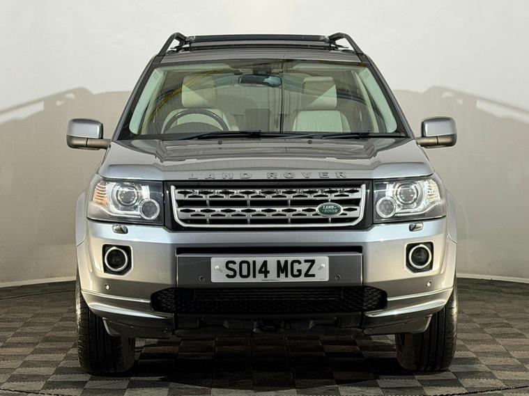 2014 Land Rover Freelander 2 Metropolis SD4 2.2 diesel automatic 4WD 4x4 SUV finished in grey and offered by Noahs Automotive Ltd in Nuneaton. This premium and highly capable compact SUV combines refined on road comfort strong diesel performance and genuine four wheel drive versatility making it an outstanding choice for families everyday driving light off road use or anyone seeking Land Rover quality and practicality. The powerful two point two litre SD4 engine produces 190 BHP and is paired with a smooth automatic gearbox delivering confident acceleration relaxed cruising and composed handling in all conditions. With Land Rover service history and cambelt replaced it offers excellent peace of mind and long term reliability. The high specification Metropolis trim includes nineteen inch alloy wheels electric sunroof with rear panoramic glass roof bi xenon headlights LED daytime running lights front and rear parking sensors front fog lights roof rails rear privacy glass electric tow bar keyless go air conditioning dual zone climate control cruise control heated steering wheel full leather interior front two stage memory setting seats front electric powered seats drivers three stage memory setting seat ISOFIX anchor points Land Rover CD DAB AM FM stereo system with Meridian premium sound touch screen digital display satellite navigation system reversing camera voice control Bluetooth audio and telephone front and rear electric windows front and rear heated screen automatic lights automatic wipers auto tinting rear view mirror electric powerfold door mirrors adjustable terrain settings hill descent control and automatic Tiptronic gearbox. Supplied with two keys and V5 logbook present this well equipped Freelander 2 Metropolis represents superb value in the premium compact SUV market offering Land Rover refinement practicality and everyday usability. Viewings are available seven days a week including evenings by appointment with same day drive away possible and nationwide delivery arranged in twenty four to seventy two hours. Part exchanges are welcome with fast fair and transparent valuations offered. Contact Noahs Automotive Ltd today to reserve this vehicle arrange a viewing or request further details including HD photos or live video walkarounds.