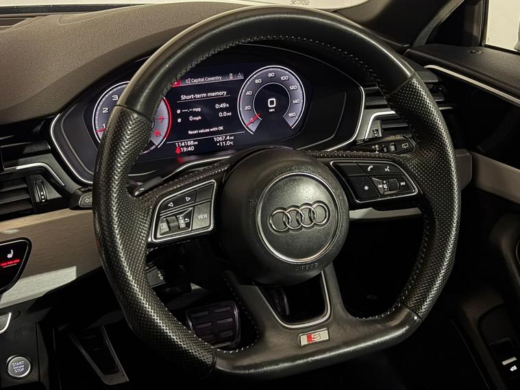 2020 Audi A4 S Line 35 2.0 petrol TFSI S-Tronic automatic estate finished in black and offered by Noahs Automotive Ltd in Nuneaton. This premium stylish and highly efficient estate combines sharp design spacious load area and outstanding real world economy making it an outstanding choice for families commuters or anyone seeking modern features low running costs and Audi refinement. The responsive two litre TFSI engine produces 150 BHP and is paired with a smooth S-Tronic automatic gearbox delivering confident acceleration relaxed cruising and composed handling in all conditions. With 1 owner from new this example is presented in excellent condition throughout offering complete peace of mind and long term reliability. Running costs are kept very low with £195 annual road tax and forty four plus MPG combined that makes every journey more economical. As a Euro six model it is fully ULEZ and Clean Air Zone compliant for unrestricted driving in London and other controlled areas. MOT is valid until February two thousand and twenty seven. The high specification S Line trim includes nineteen inch alloy wheels bi xenon headlights LED daytime running lights front fog lights rear privacy glass rear parking sensors keyless go virtual cockpit stop start technology air conditioning digital dual zone climate control cruise control half leather half suede S Line interior front three stage heated seats height adjustable front seats ISOFIX anchor points Audi CD DAB AM FM stereo system touch screen digital display satellite navigation system reversing camera voice control Bluetooth audio and telephone USB audio and charging input front and rear electric windows rear heated screen electric powerfold door mirrors leather arm rest cup holders vehicle dynamic modes electric park brake auto hold and drive select vehicle dynamic modes. Supplied with two keys and V5 logbook present this well equipped Audi A4 represents superb value in the premium estate market offering style practicality efficiency and everyday usability. Viewings are available seven days a week including evenings by appointment with same day drive away possible and nationwide delivery arranged in twenty four to seventy two hours. Part exchanges are welcome with fast fair and transparent valuations offered. Contact Noahs Automotive Ltd today to reserve this vehicle arrange a viewing or request further details including HD photos or live video walkarounds.